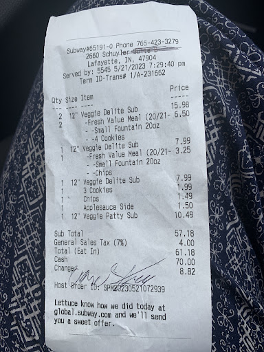 My boyfriend and I went to this place. They may have been soon to closing. But i use to work at Subway. They instantly matched my energy. I just wanted something simple i let them know, I was in and out and they were very appreciative of how easy i had made it. It was 8/13/23 around 7-8 their time. It was two boys work, i didn’t get their names but one of them has a comedian side to him, and they both had a good vibe to them. It also seemed very clean in there. They asked me if i wanted chips, cookies or something to drink. Thanked me and told me to...