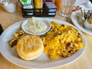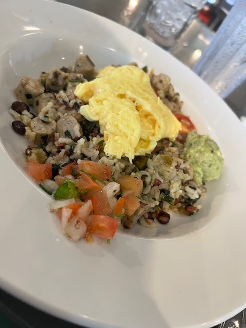 Now on to the food. The biscuits were good. I do prefer my gravy to have more meat, but that's more of a preference. I go with my girlfriends we taste each other's food so. I tried a lot of things. The french toast is really good, very large. Enough 2-3 people. The churstyle doughnuts are amazing. You get warm caramel with them. Very sweet. I couldn't eat more than half to much sweets for me. Grits are surprisingly good. It's very hard to find good grits. I got the brisket taco. At first taste, it was lacking a little seasoning. But once you put the green sauce on, it was amazingđ. Good coffee, not watered down.
