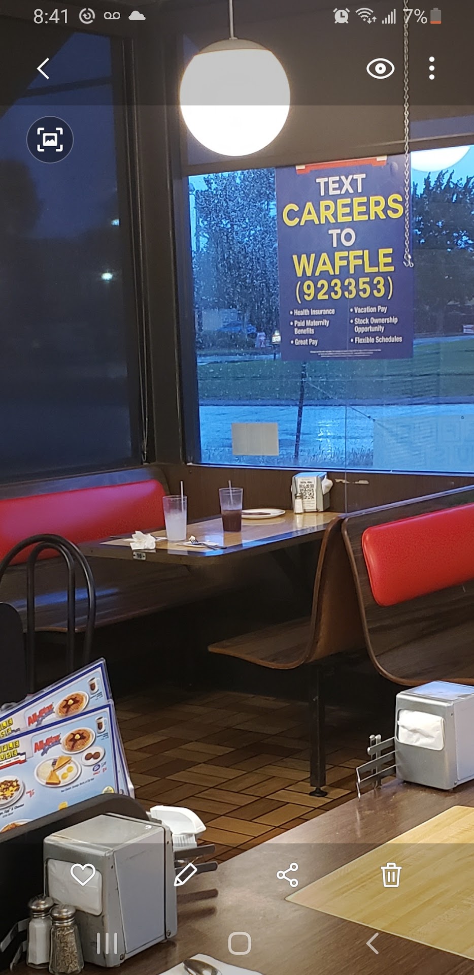 Read moreMy breakfast companion and I sat down at a booth and waitress came to our booth and took out her order pad and pen and asked us what we wanted to order. There was nothing on our tabletop, including menus! Told her we needed to see the menus before we could order. So she went and got us one menu (for two people sitting opposite from one another in a booth! My companion had to ask her for a menu for him. There were only two other customers there so they definitely weren't very busy at that time. We ordered coffee with our breakfast and was never offered a refill. The temperature outside was comfortable enough to wear tee shirt and shorts but inside Waffle House they had the AC on so low that we were shivering as we were ordering our breakfast and asked our waitress if they could raise the temp so it wouldn't be so cold inside. Said she'd see about it. The temp obviously wasn't turned up any because we continued shivering as we tried to enjoy eating our breakfast. But before we could finish eating our breakfast order, we had to each get a to-go container to put the remainder of our breakfast in to take home with us to eat there because it was too cold in there to finish eating our...