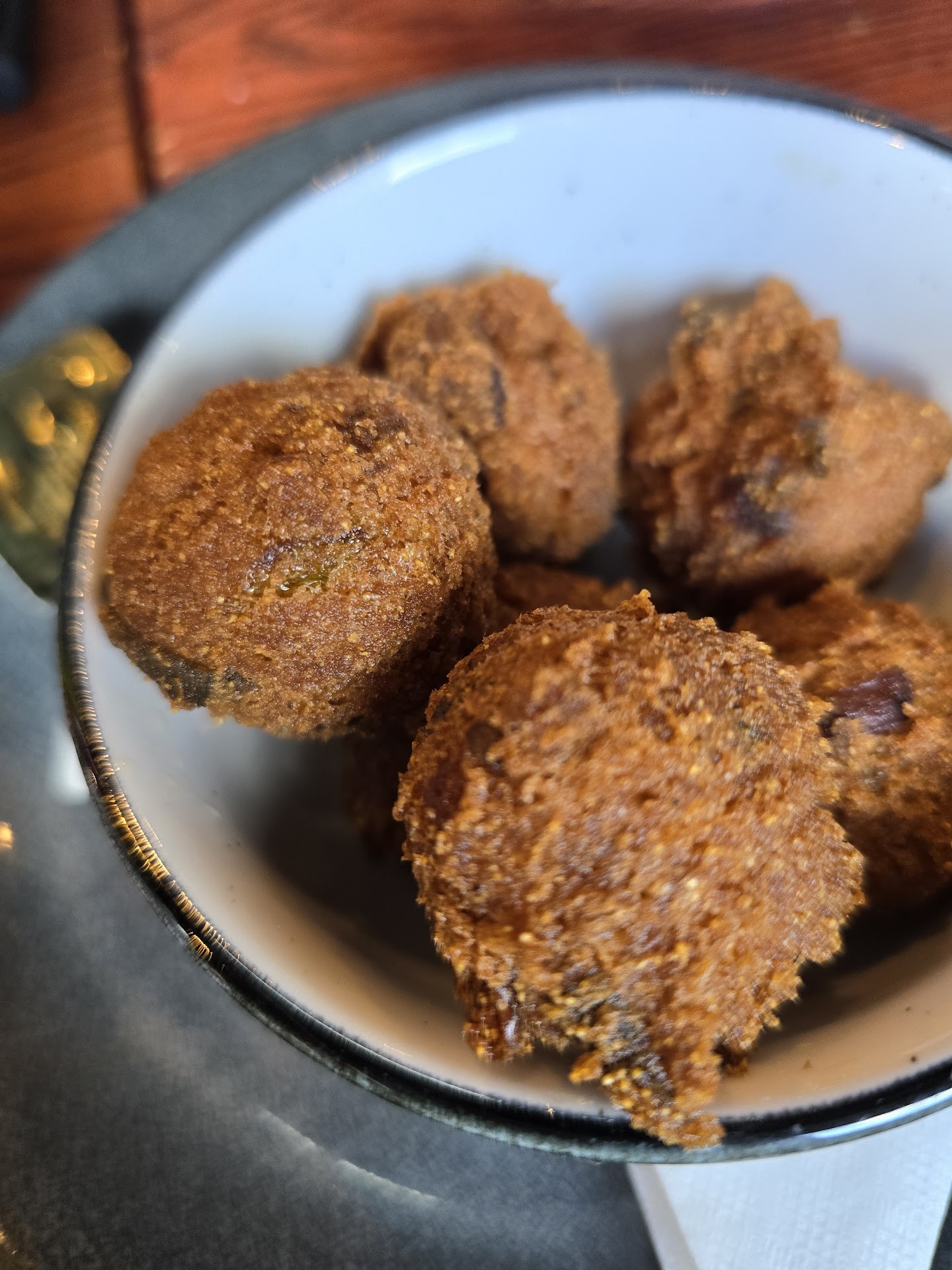The atmosphere. When you first walk in you are greeted by the hostess. It is kinda loud in there because of the acoustics, the other people talking, etc. The first time we went you could forget about holding one conversation unless yall wanna talk louder than normal to each other. The second time was much more manageable since we sat by the outside bar area.