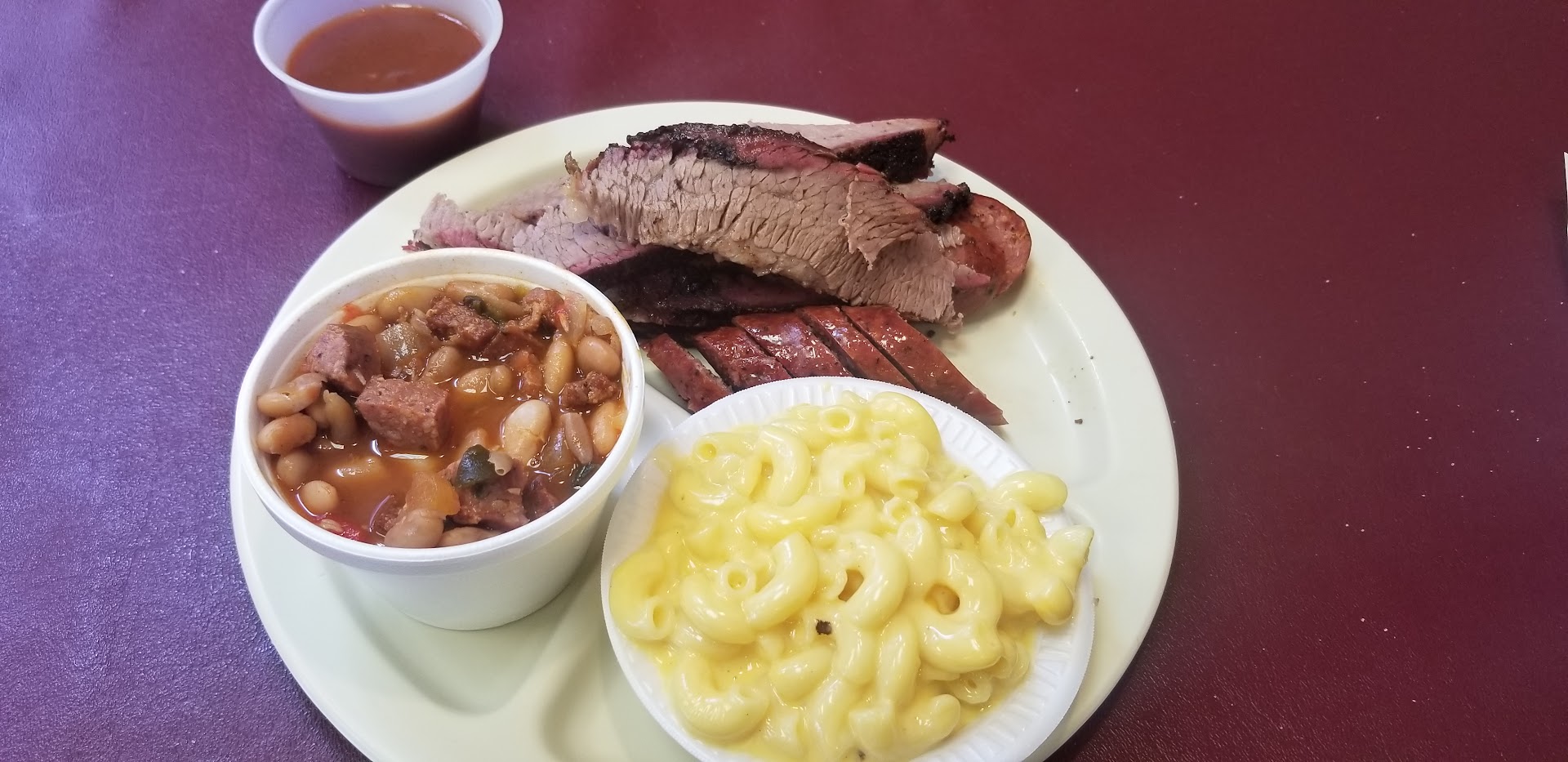 Keep in mind, I have very high standards for BBQ as I'm from Texas and have tasted the best. We came in to this restaurant very hungry and honestly not high expectations. I'm not bothered by the fact that the establishment is connected to a gas station. BBQ is historically judged by the food and not so much the atmosphere. I'm not bothered by the 29.00 dinner for two either. Even the worst bbq is expensive. I ordered a two meat plate which consisted of brisket, jalapeno sausage, potato salad, and pinto beans. Let me get the worst out of the way, The pinto beans were awful. I took 2 bites and I was done. Completely bland in flavor. The potato salad wasn't anything special, but it was adequate, much like potato salad from a grocery store cafeteria. The brisket was tender and had a nice smoky flavor. The jalapeno sausage was tasty. However, as I mentioned, BBQ in Texas sets a high bar and this place falls below it. It wasn't bad bbq at all, in fact, I mentioned to my wife it reminds me of the brisket someone would bring to church pot luck after church on Sundays. That said, you would have to drive a ways out of town to get good food in general, and I would imagine if I lived in this area, that I would frequent J&J's quite a bit. It would probably be my go-to if I lived here. They also offer many other dishes and if I come back to Lago Vista, I might stop in and try some of them. 3 stars is not...