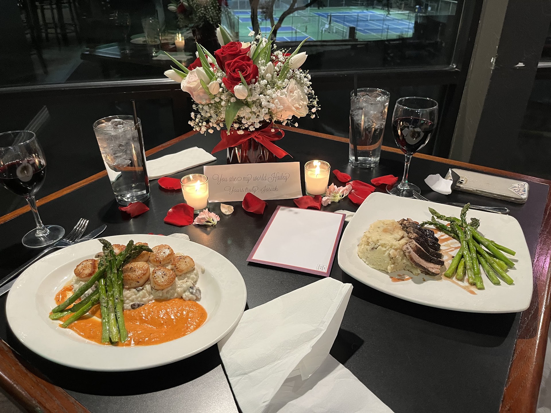 I think I have to say this was the best and most memorable dining experience of my life, especially because of Phil and his wife Kassi. You might think this a bold claim but I have to tell you why. I called them a few days before my visit and asked if they could accommodate my girlfriend and I for valentines. A man named Phil answered the phone and couldn’t have been nicer. He said certainly and explained the valentines specials they had going. Then I went on a limb and asked if they might be able to light some candles and write out a message for me on some paper for my valentines. He kindly acquiesced. The time came for our dinner reservations and unfortunately we were 1.5 hours late. But they so super kind about it. Once we got there, I was blown away. They had everything I had asked for, PLUS a beautiful bouquet of flowers on the table. And rose petals scatted around the table. turns out the the waitress, Kassi, before our shift, had gone out and gotten these flowers for us. They were really nice flowers. During the dinner, the cook, Phil, came out to ask us if everything was to our liking. Which the food was soo good. Best scallops I’ve ever had — melt in your mouth. So yes, yes it was. I’m so thankful for Phil and Kassi and this restaurant for making a life time memory for my...