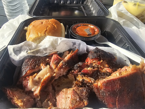 Read moreFirst time trying the food here and will be back. I had the rib tips dinner with baked beans and green beans. The ribs were delicious and the sides were just as good. I love green beans and was not disappointed. Husband had the pulled pork dinner with Mac & cheese and baked beans. The mac & cheese was good but we thought it could of used a little seasoning but was still good. We also got the banana pudding and my husband is very particular about banana pudding but he really liked it. We would definitely come back we just wish they had fountain drinks. There is no seating inside so you can either eat outside at one of the tables or take it to go. The view is really nice as this is across the street...