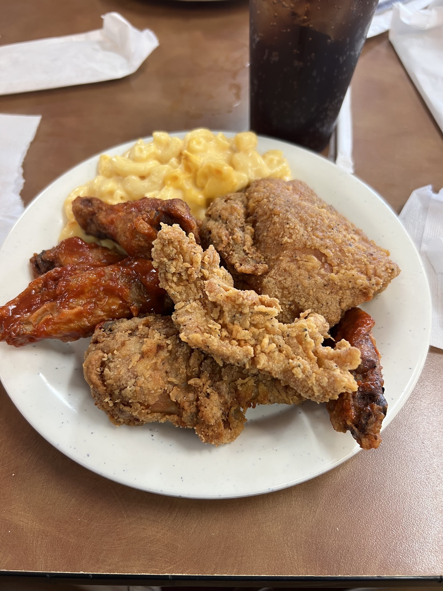 In the area visiting Great Wolf with the Kiddos & want some home cooked food. Found this place & the reviews are not true. Well maybe just not what I know to be your southern cooking. Let’s say the sweet tea, corn bread & fried chicken was the best thing to southern cooking. The rest was right out the frozen department or can foods. They would have done better if they used the banquet Mac & Cheese instead of what they had very watery. There is also a smell of a dirty mop or something that hit my nose but I said let’s give it a try anyways in which that usually would have turned me back out the door. Mash potatoes was instant by the way. I gave it a 2 start b/c the staff was very friendly & helpful good customer service but it’s not your real style southern or soul food you are looking for. Pics I put small amounts on the plate & tried to pull from the corner of pan that didn’t help. My husband told me let’s move here you would put them out of business...