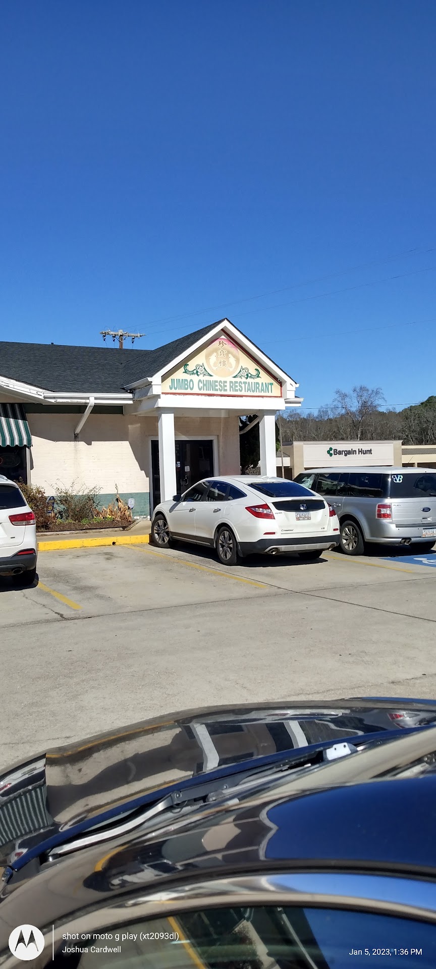 Read moreIf you had've asked me 10 years ago how I would rate Jumbo Buffet, I would have enthusiastically given them a 5+ score. The food was delicious and the resturant was clean. I honestly don't know what happened. New ownership? A different chef? (obviously). Change of grocery supplier? I couldn't tell you. But I can say this...the food is terrible now and the resturant isn't as clean as it could be. If they clean at all, it must be before opening and after closing because I have never seen anyone that works there doing anything but standing at the register, rolling silverware or eating. Oh, I have seen employees from back of the house refilling food on the buffet. It leads me to wonder how clean the kitchen is if the area seen by the guests isn't well maintained. But even with that being said, through the years I still chose to eat there because they scored passing on health inspections and because the food was so good and the price was fair. Not anymore. The food is terrible. Usually over or undercooked, over or underseasoned, low quality ingredients at a higher price. I don't say this after just one bad experience. I have been back many times in the hopes that the problems have been corrected. I even tried ordering off of the menu instead of eating food that had been sitting under lights on the buffet. In fact I did this just last night. I placed a to go order of Orange Chicken, Steamed Dumplings and Eggdrop Soup. I can honestly say it was the worst it has ever been. The dunplings were raw with a little piece of cold meat in the center, the egg drop soup was so slimy that I was afraid it might be spoiled, the chicken was grissley and tough and the orange sauce tasted like they had added a few orange peels to whatever sauce they had sitting around and called it orange sauce. Well, I was starving so I tried to eat it anyway but after a few bites I threw it in the trash. I ate Doritos for dinner and called it a night. I will never, ever go back and this makes me kinda sad. Bye Jumbo. It was good while...