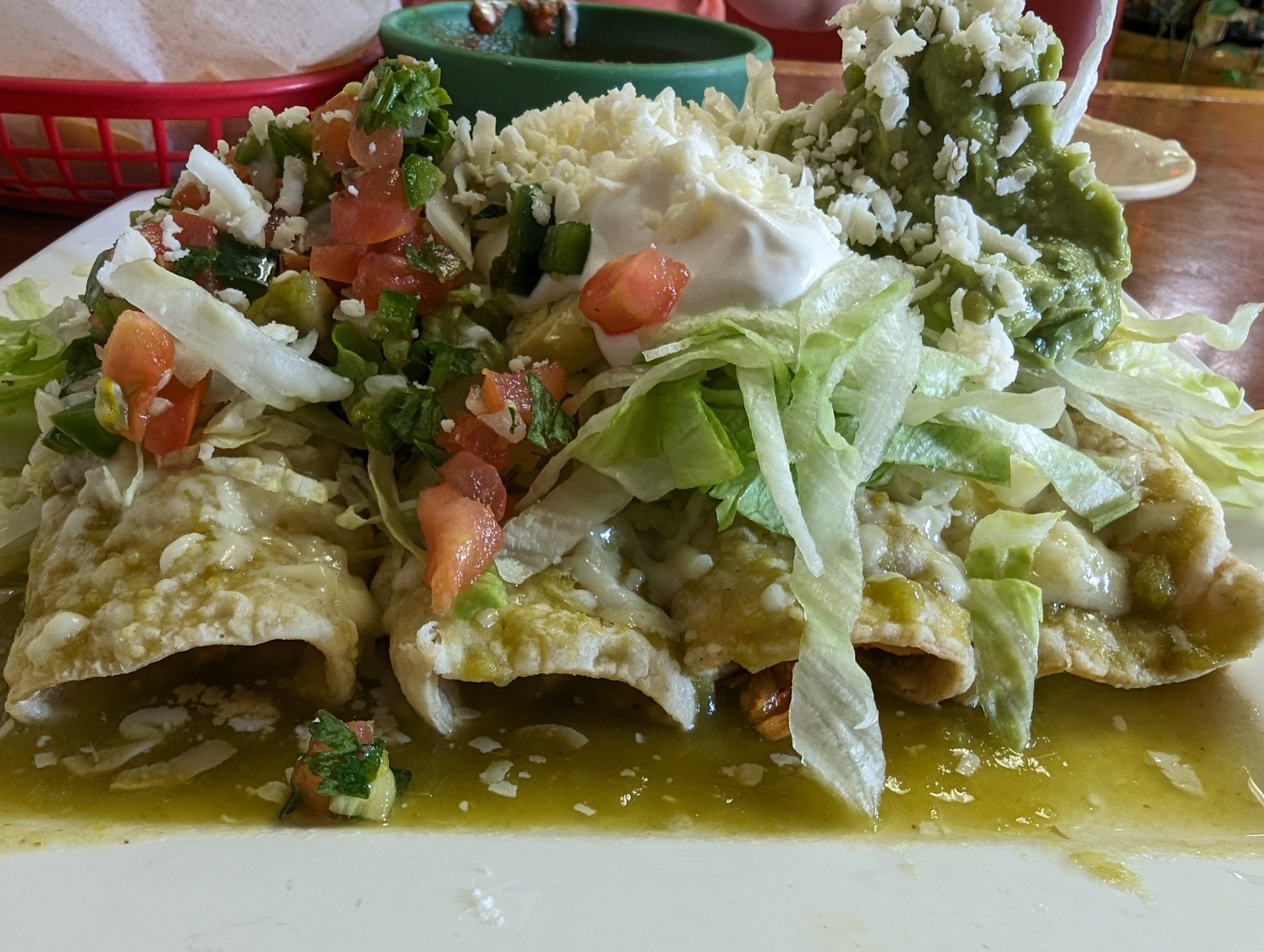 Sigh.... Enchiladas Verdes and happiness 😊 I did not expect to get this quality of food inside a small grocery store / taqueria in the small town of LaGrange. Needless to say, much goodness has been discovered today. I'm absolutely stuffed silly (yes I ate that whole plate), but it's alllll gooood as they say. Just a wild guess, but I believe the tortillas were either fresh made or at least not mass market style. They tasted like fresh made. The Verde was nice and thick and carried a nicely balanced amount of heat, as did the chicken enchiladas. Will definitely definitely be back for seconds and thirds 👍. The wife says the chorizo is some of the best she's had in quite a while. We also walked the small store. I've noted a few items I'll be back for, hashtag molasses cookie cake? Cake cookies? Idk but they are whispering their way into my subconscious right now. If you're in town on a visit and want as authentic as you can get Mexican food, this is the place to get it. Give them...