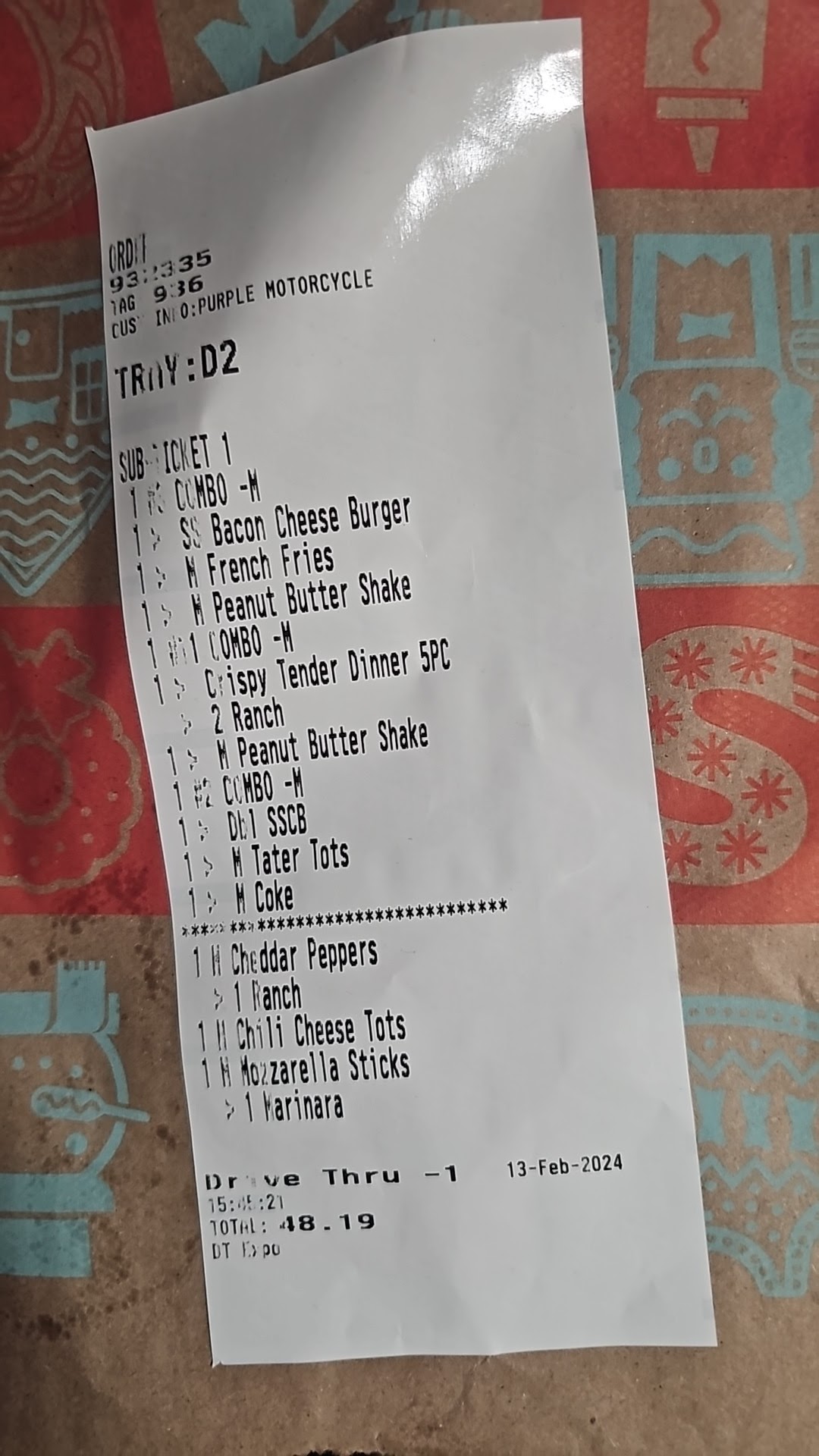 2nd visit long line so long wait not a problem, I ordered the same thing I always order for breakfast I asked this time for my tots to be fresh as the last time I got them they were cold and not good, I received an ok from the young lady in drive thru. Get to the window pick up my food and drink and again tots are disgusting and my sweet tea was horrible I immediately stopped flagged a sonic worker and asked if I could have some fresh tots as these weren't fresh as I had requested. She was very helpful said no problem and came back shortly with what I believed was fresh tots to my surprise they must've been the same batch of tots and someone just recooked them they were even harder and disgusting. At this point I'm convinced that I don't need to order tots anymore.