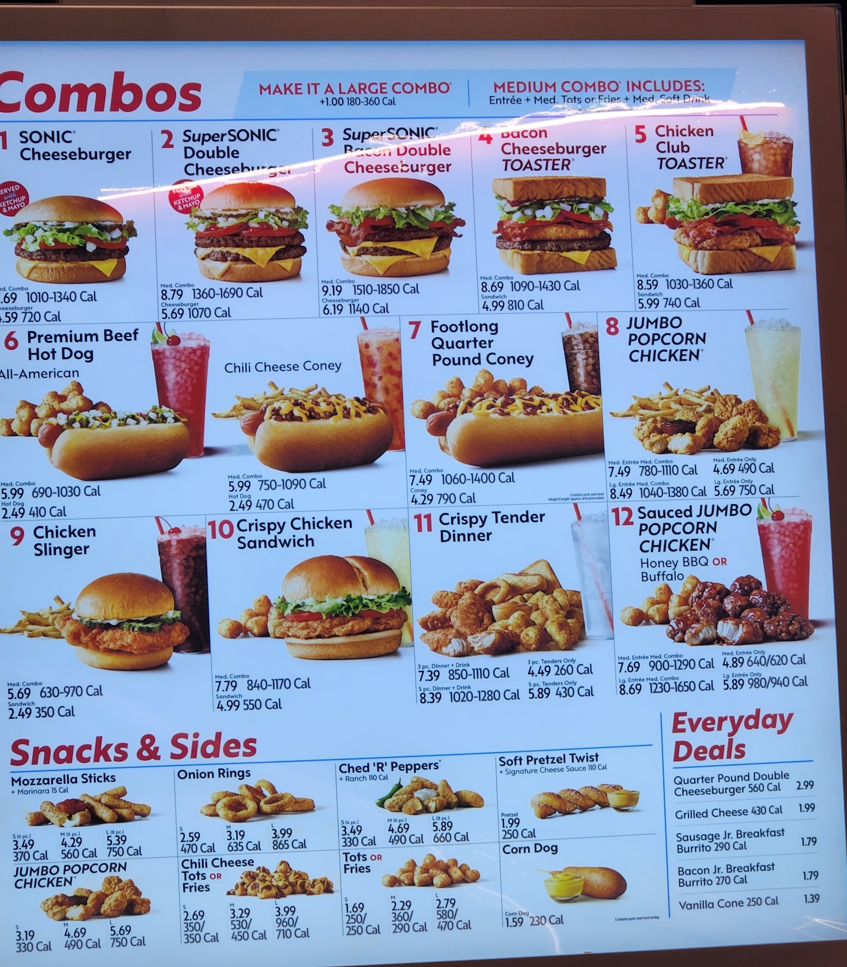 The menu is extensive, offering a wide variety of options. Sonic's standout feature is its vast selection of drink choices, including slushes, milkshakes, and limeades. These are often a hit, especially during the hot summer months.