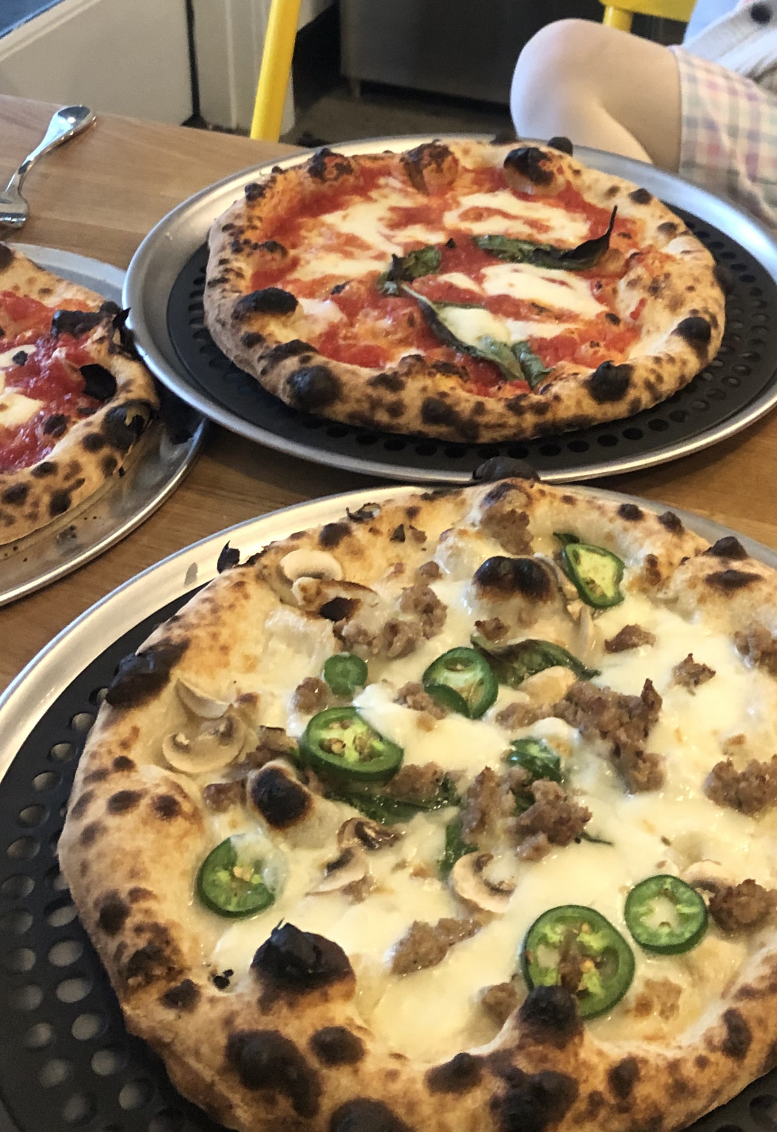 Read moreThis place is sooo good. The pizzas are adult size single serving though if coupled with a salad could be split between a couple of folks. The crust is amazing and perfectly cooked, not too soft and not too crispy and has really nice puffy outer edge. The toppings are fresh and the combinations clever and yummy.