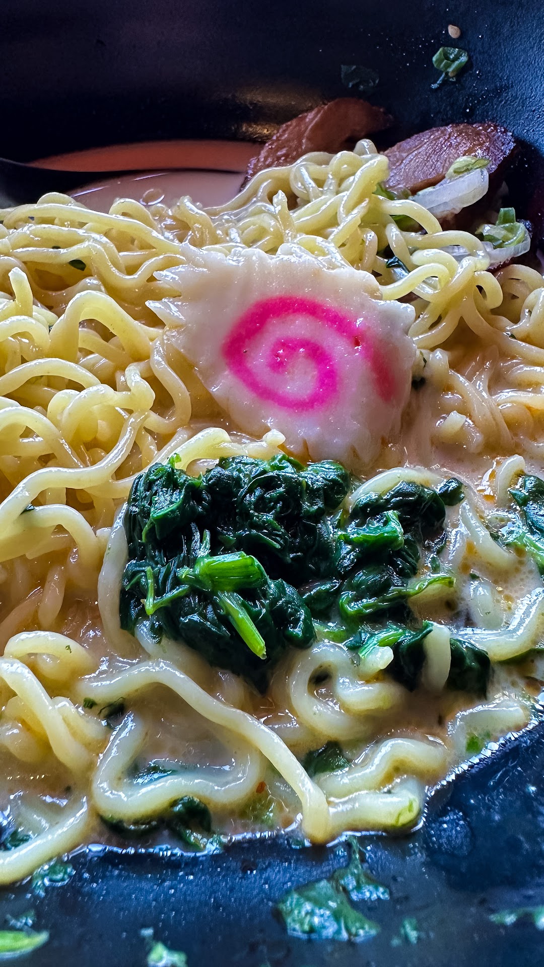 Savor the Gu Ramen, which is customizable to spicy level, choice of noodles and toppings. The combination of Tonkotsu broth with pork and chicken and Chashu was so satisfying and delicious!! The added spinach gave me the veggies it needed.