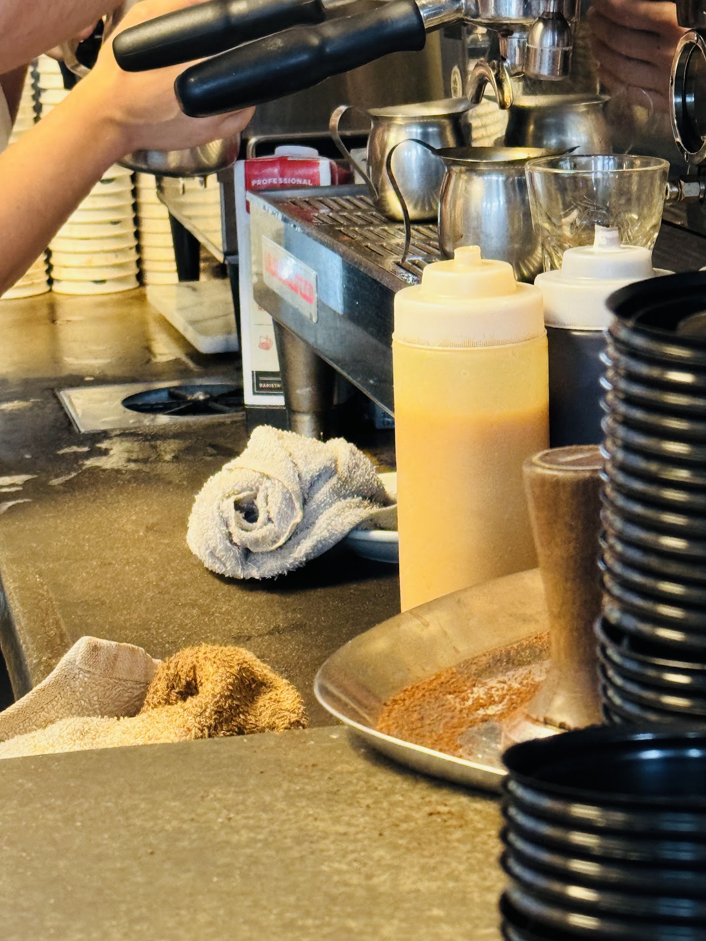 If you would like to waste your money then try their coffee! The coffee tastes like milky water!!! The caramel latte I got tasted only like milk and when I nicely and quietly waited till nobody was around and asked them if mine was inadvertently made different or if they can adjust the taste so it tastes a bit like coffee, they said it is what it is! And that I have to pay more to add another shot! The rude young guy thought this is my first time drinking coffee in my life ??!!! Or we've never been in any other coffee shops??!!! The other noticeable thing was the poor cleaning practice!!! They had put the dirty and so called clean (looked disgusting) towels next to each other! The one used to clean the frother was disgusting and was halfway on the dirty countertop!!! In general if there was a minus five, they would deserve it! ZERO clean practice, ZERO customer service, ZERO taste!...
