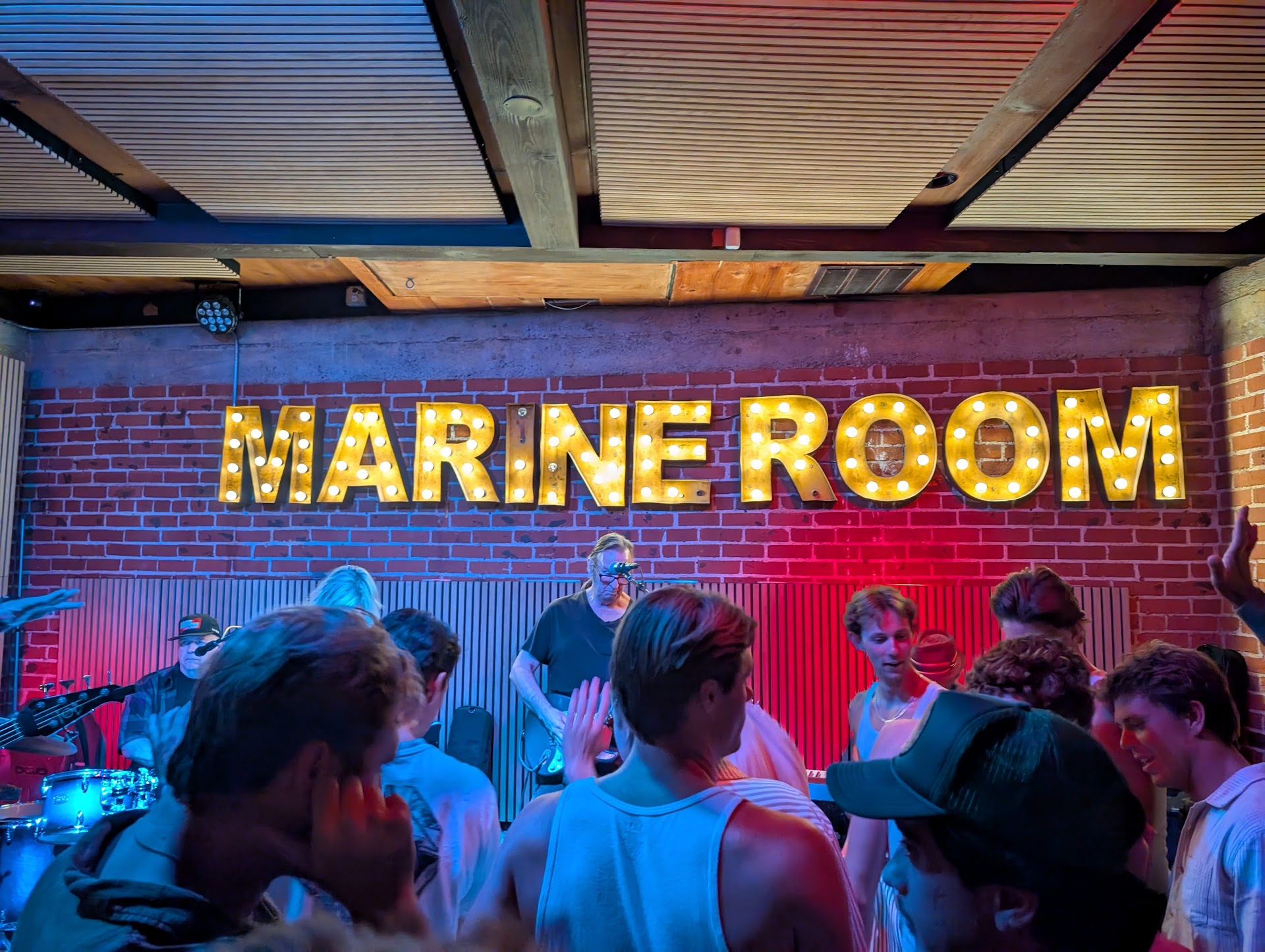 I was recommended to visit this place by a local friend and had high hopes. The atmosphere was good and I even enjoyed the classic rock band that was playing June 7th even though I had the dates wrong for the live music since the website still had the calendar from May and I was expecting reggae. There were a lot of people which was a good sign and I even started chatting with a couple of girls at the bar while I was waiting for the bartender. When the bartender arrived she approached the girls next to me and asked me for their order. The girls nicely said that I had been waiting longer and to take my order. The bartender then looked at me and waved at me dismissively while turning back to the girls to place their order. There was an awkward moment because even the girls noticed how rude that was before they proceeded with their order. Finally I was asked for my order and I placed a Suero (a common Mexican non-alcoholic drink). The bartender understandably didn't know the drink so she walked away and asked her coworker to handle it. Fortunately her co-worker knew that the equivalent drink was a Pepino and gave it to me for free. Thanks to him that order ended positively but unfortunately that bartender really rubbed me the wrong way and my first impression of Marine Room is marred by that unpleasant reaction. Other than that it seemed like a fun place but because of that I won't be going back in the...