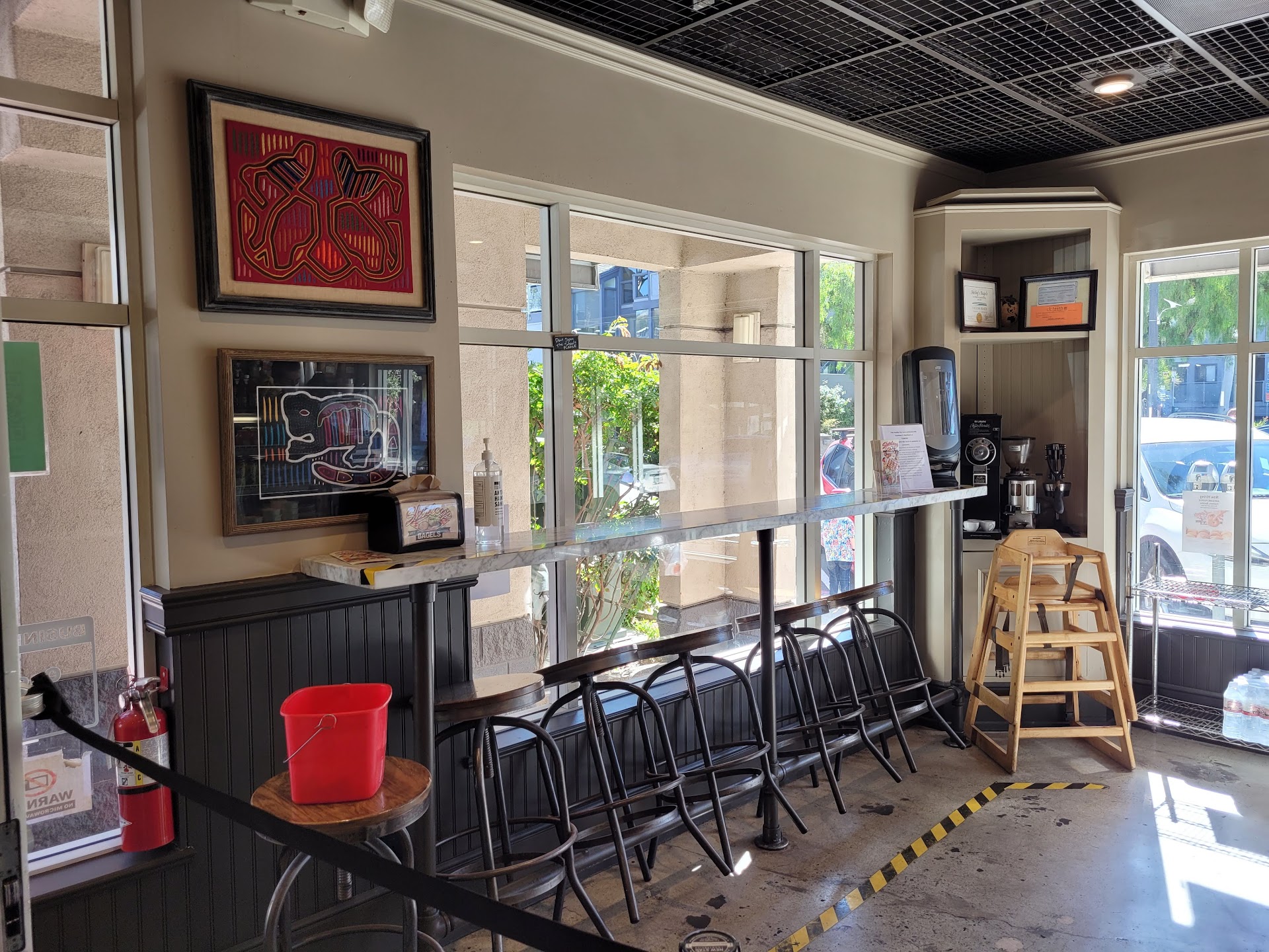 First time here and I love it! If you like bagels you must try them here! Probably my new favorite spot. Specially because of the location. You can grab your bagles to go and find a spot on the beach or with a view of the beach and eat them while you enjoy the sound of the waves and the tranquility of the ocean. (Grab a book and read after, while you are out there đ) No restroom inside the restaurant and no indoor seating available right now but there are three tables outside and a bench close by to eat there if you like. (Again just take it to go and have it by the beach) parking was available but I can see it being tough to find one during lunch time so beat the rush. Many bagels to choose from but of course I went with the jalapeño cheese. We ordered the California bagel, it gives you a choice of meat and .....you guessed it, I picked bacon. We asked to add Chipotle and it was delicious đ staff was friendly and helpful. Great service. And everything is well organized in case you want to order ahead and just pick up your order quickly and take it to go. Indoor is open for seating and some tables for two are...