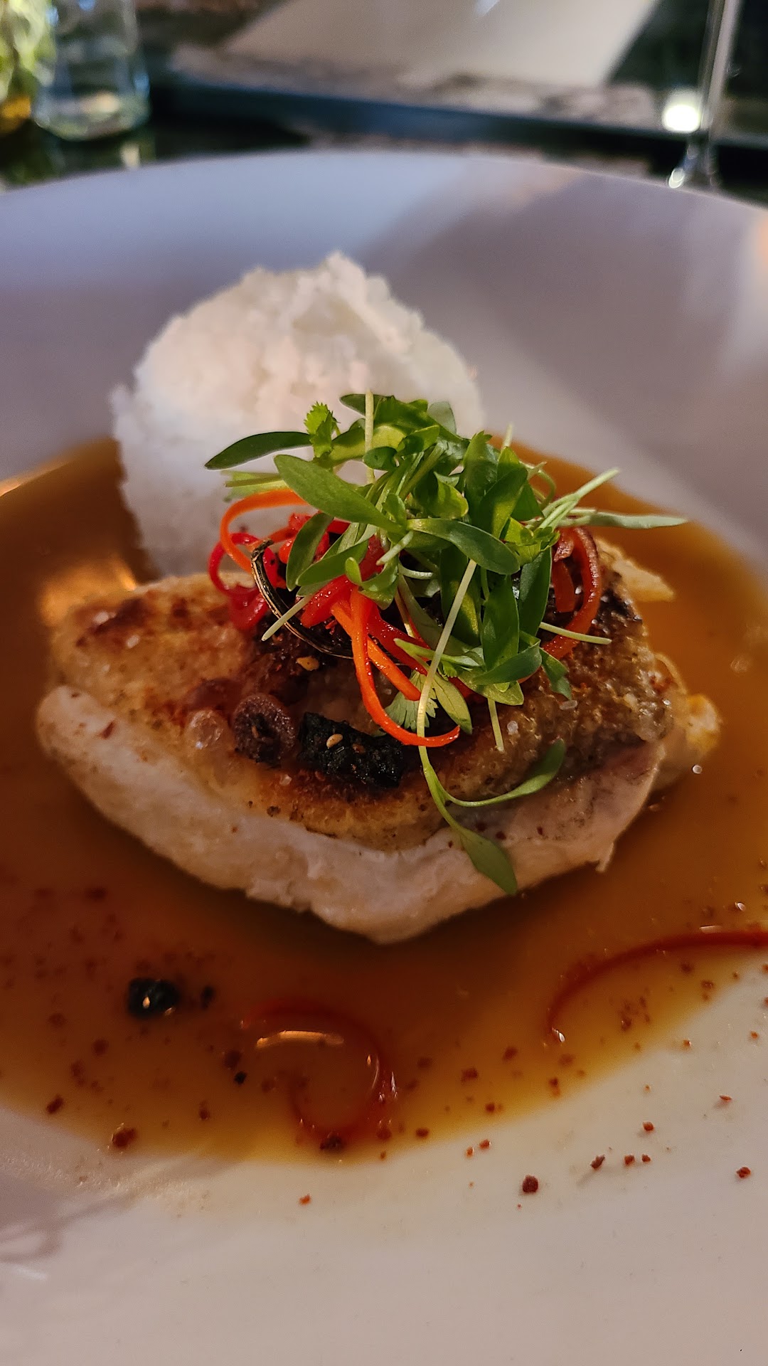 The chicken (pictured) was the first entree course, and it was amazing. Crispy on the outside but perfectly tender and juicy. It's just delicious.