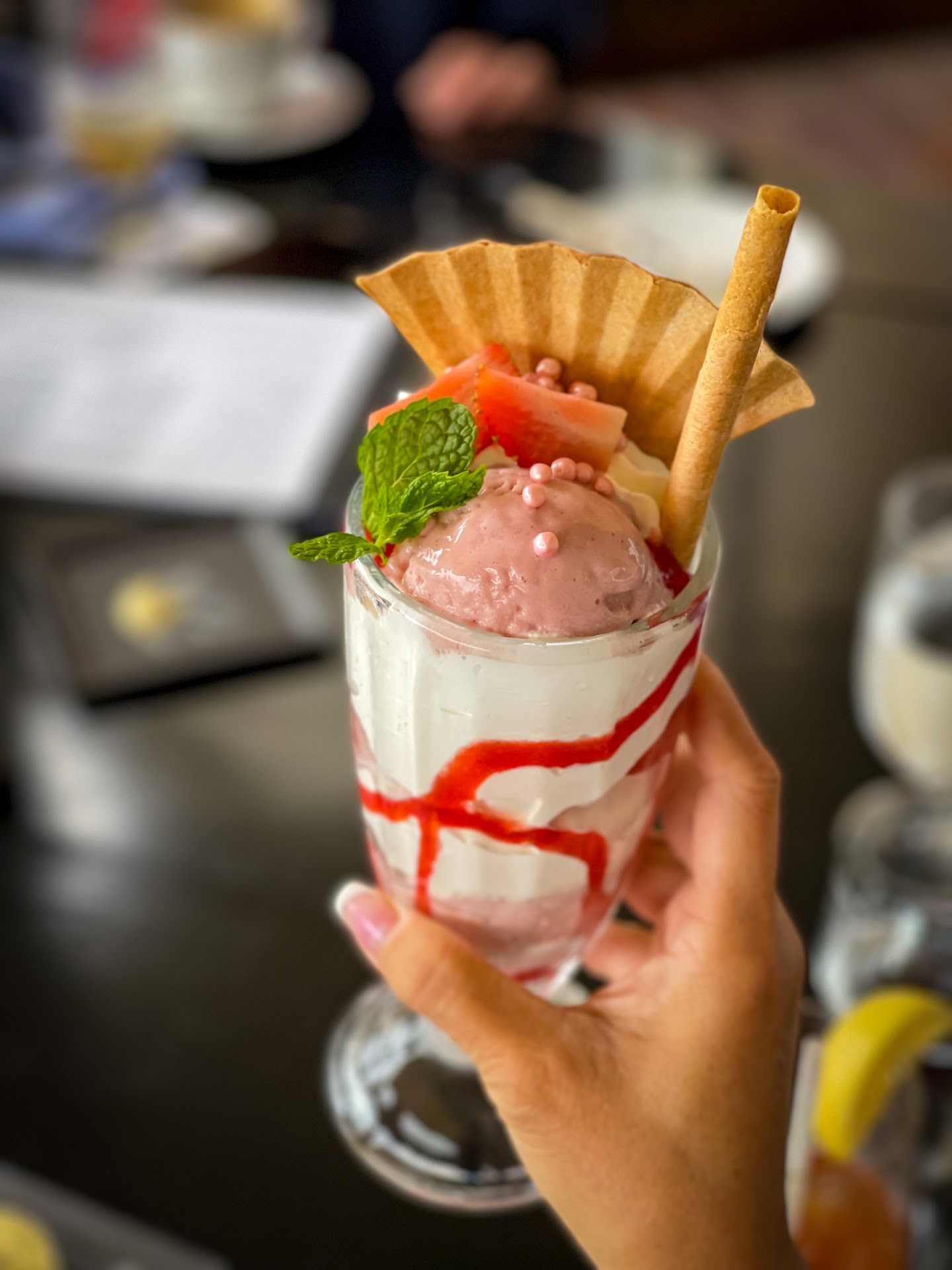 The dessert was also amazing. We ordered the house especially ice cream to share. We were so impressed with the presentation of the dessert and didn’t want to eat it to avoid ruining the arrangement on the ice cream.