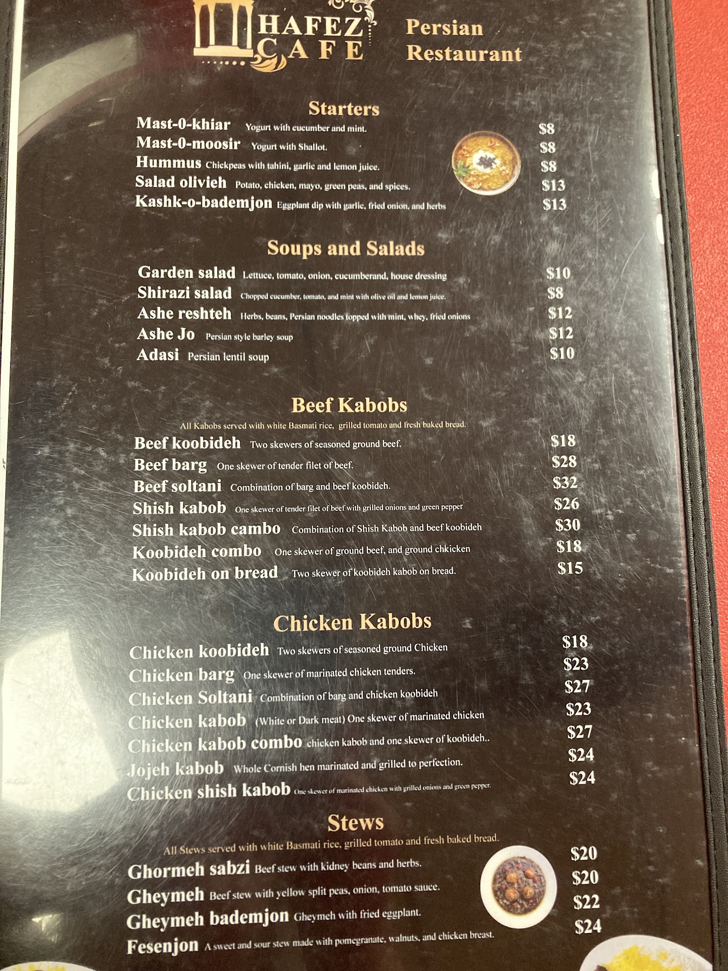 Read moreThe place is so dirty. The don’t even have any air conditioning on which makes it a nightmare during hot weathers like today. The koobideb kabob is so awful. It would break to pieces when touched, tasted very bad and had lots of fat that would make your stomach sick. The kabob was also burnt which had a tremendous effect on the taste. The rice is not fully cooked, was so hard and tasted so bad. Even the grilled tomatoes in the food had gone bad already. They have no idea what customer service looks like. There’s always no one around when you need something and you literally have to walk around the restaurant, find someone and let them know what you need. The whole experience was terrible and I’m not coming back here again. They’ve lost me and my whole family as a customer and I recommend all of you to not waste your...