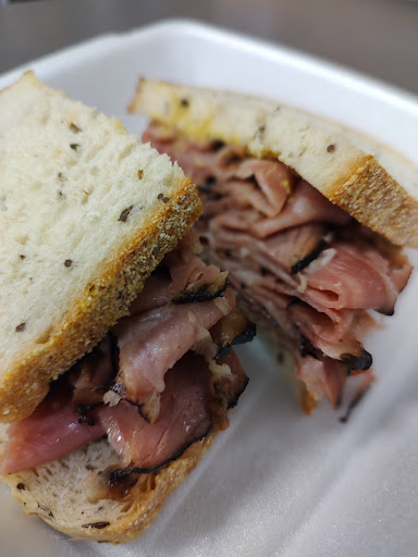 Read moreFirst time here and husband enjoyed the pastrami sandwich which had thin slices of hot pastrami and deli mustard on rye bread. The sandwich choices are half or full and come with a side choice of potato or macaroni salad or coleslaw. I had the falafel pita, that had tomato and lettuce with tzatziki sauce. It was good but simple and not best I have had. The pita was a full bread and was thin enough that it fell apart while eating it and hold in the contents. My mom had the brisket sandwich and loved it, came the au jus dip. It was busy with regulars that were there. Tables and chairs were available indoors and outside. They also sell deli meats by the pound to go, breads, chopped liver...