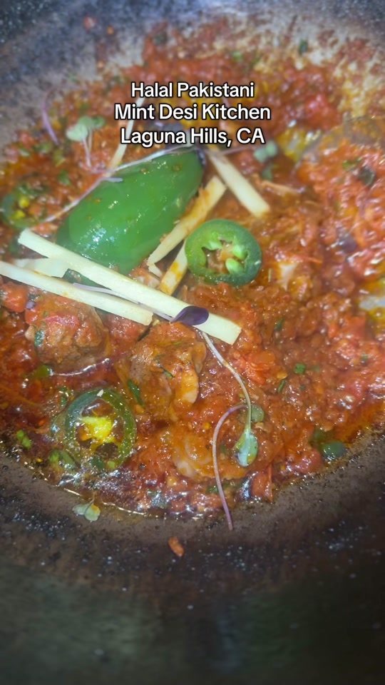 Wow what a come back. Mint was my favorite halal Pakistani restaurant and my go to for takeout orders. When it had a fire accident few years back, I was sad. Finally they are back and in the same location just way much better. The restaurant has been set up to given an upscale experience. It is in a strip mall and it just so unexpected to see this trendy vibe in that location. There are plenty of parking spaces. I am glad that I made reservations it was full house. We were asked to wait for few minutes while they set up our table. This could have been done before but its ok. Then when we were seated, our waiter pointed us out the popular dishes and drinks. The seating area is nicely decorated with dark green seats and modern chairs. The ambiance is enhanced with dimmed lights and table lights. One wall is brick with a projection tv. Another wall has a big ethnic wood door. It is a nice combination of modern with ethnic elements.