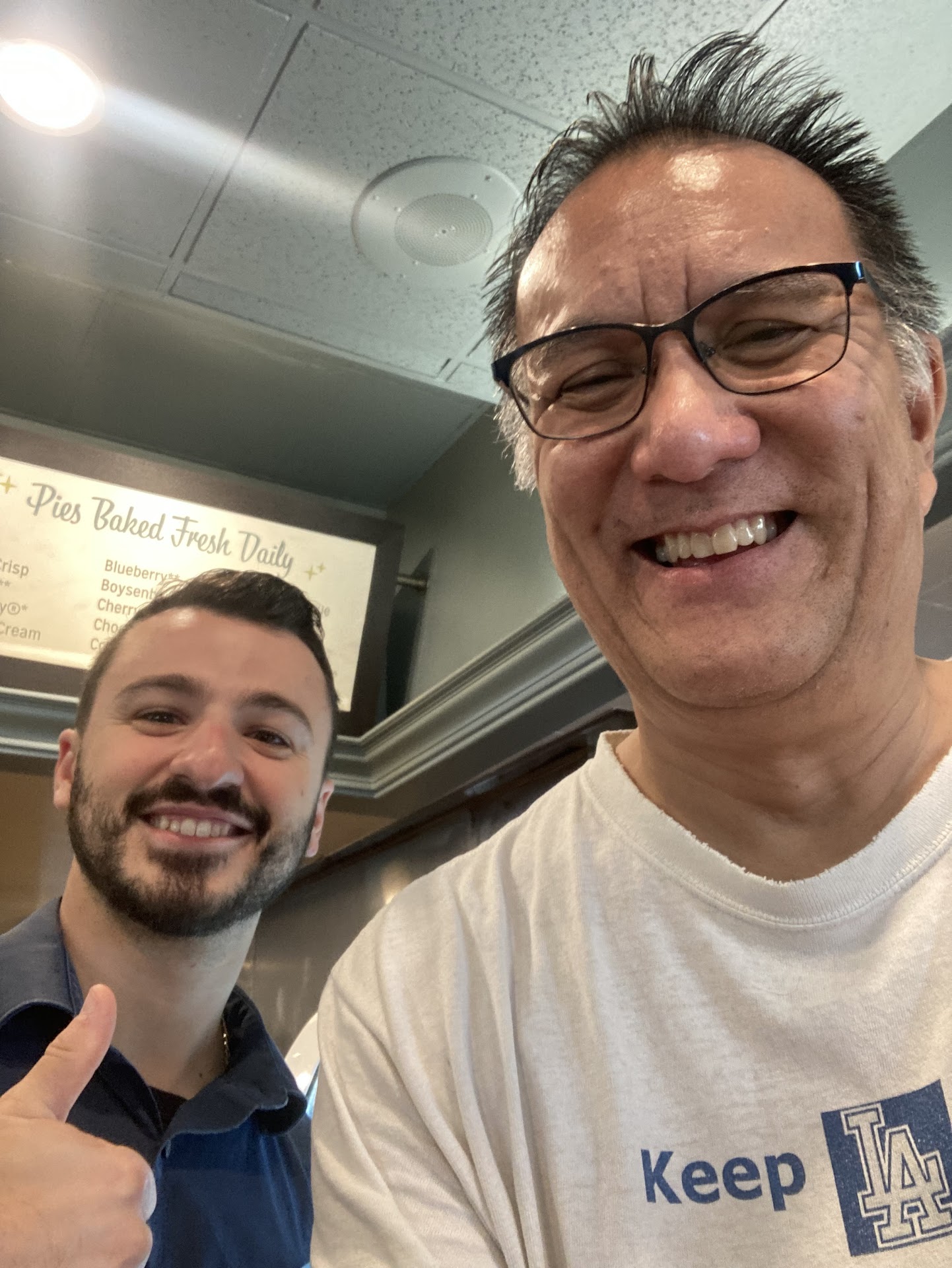 Read moreStopped at Polly's Pies in Laguna Hills today for breakfast. Grant was my server and a fine young man who was professional and efficient. I ordered the chicken friend steak meal with OJ and a cup of coffee. As I sat awaiting my meal I noticed two Orange County Deputies and called Grant over as I wanted to thank them for their service by buying them breakfast. My food came and I enjoyed my meal and I glanced over at the Deputies as they enjoyed their food and conversation. As I finished my meal I paid both tickets and left tips for both tables. I then went over and handed the two officers the paid invoice and personally thanked them for their service. They both had several stripes so I am guessing either sergeant or lieutenant and mentioned to them that I am sure thay have truly earned those stripes and I mentioned how much I appreciate their service. They were very thankful and I wished then a good day. It was a pleasant breakfast and my heart felt good acknowledging and honoring such bravery and sacrifice in service. The ambiance was pleasant. Recommended.