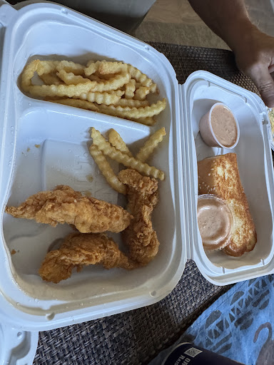 I ordered a 4-piece combo for dine-in and a sandwich combo to-go. The dine-in meal was extremely underwhelming. The fries were soggy and I was literally given about eight fries total, spread out on a plate that was unusually small ā not the normal wider basket Caneās typically serves meals in. The bread was cold and damp, and the chicken fingers were the smallest Iāve ever seen, closer to the size of nuggets than tenders.