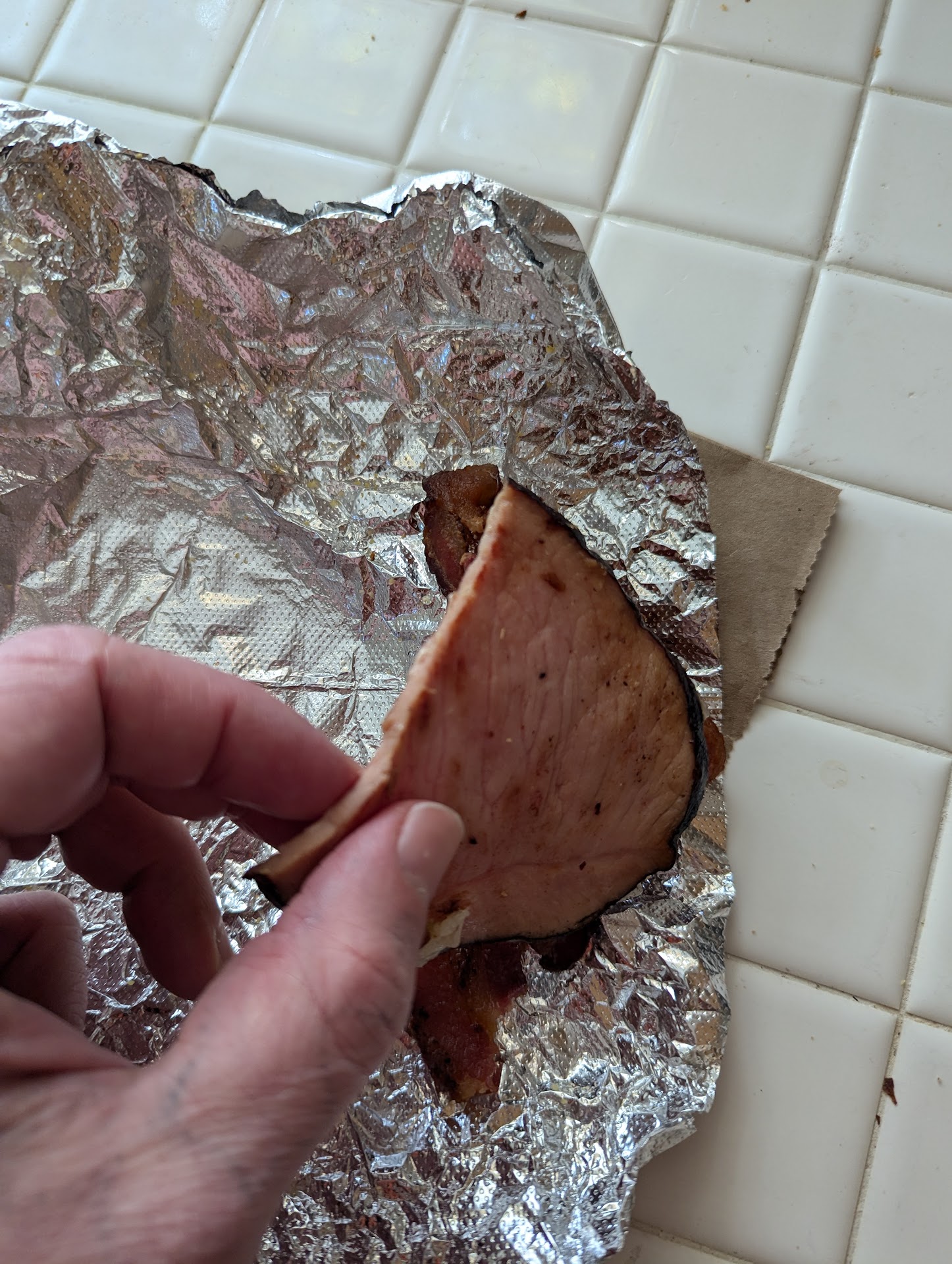 Mostly I'm upset about the price of what I paid versus what I got. Y'all, if you're charging THIRTEEN DOLLARS for a breakfast sandwich, it needs to actually have a good amount of the things it's advertised as having. You charged me FOUR DOLLARS for additional ham that ended up being a piece that maybe weighs thirty grams (picture attached), that's embarrassing. That cost you what, 10 cents?