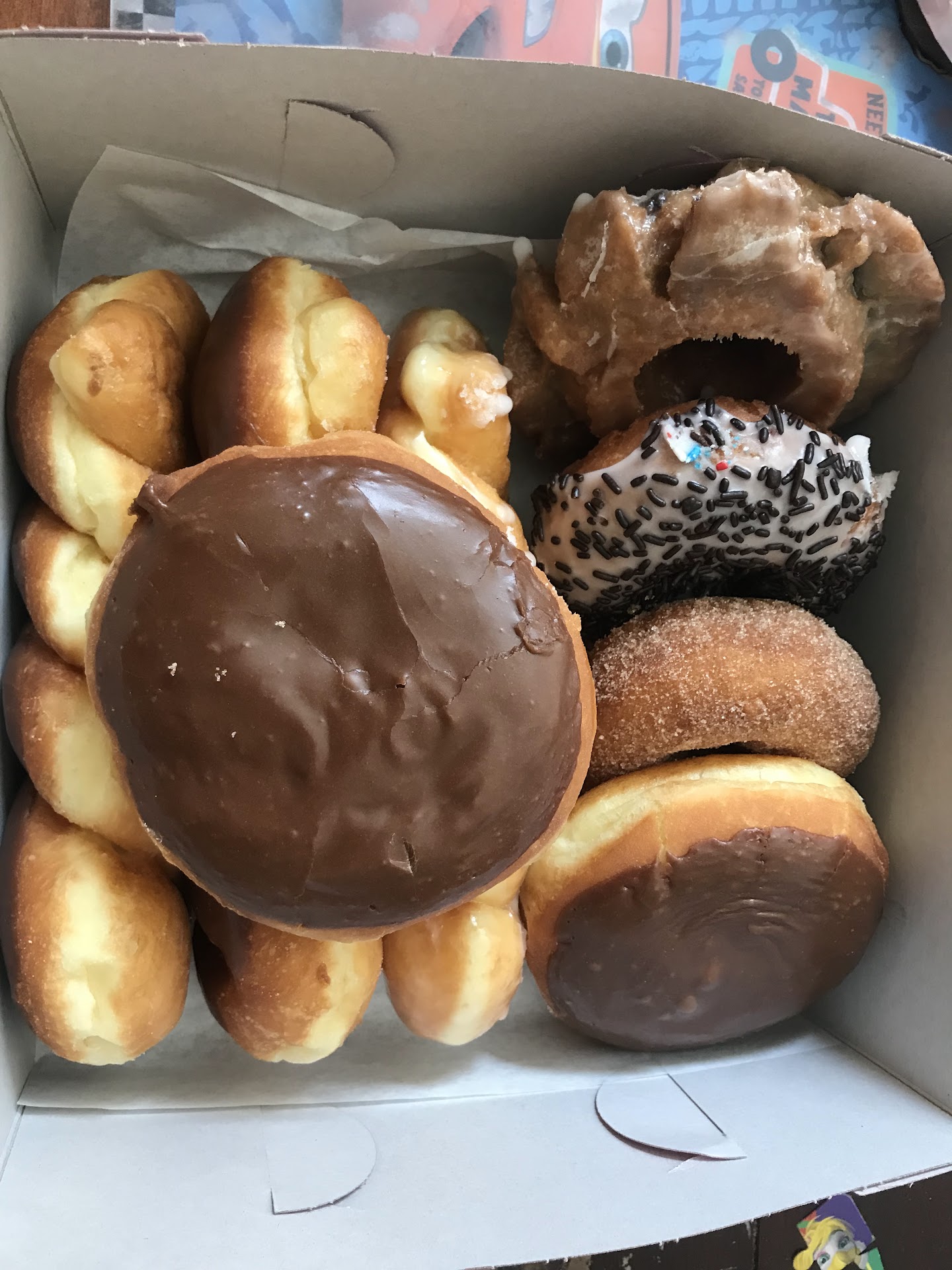 These are some of the best donuts I’ve ever tasted. They are not fancy donuts, just the best regular donuts you will eat. The cake donuts, which can be dry at other donuts shops, are so flaky yet have a slight crisp on the outside , they literally melt in your mouth. Don’t go too early cause they won’t have all their yummy donuts out yet. Again, get these fresh and nobody can beat the taste. I have to control myself or I would eat at least one everyday. A lot if regulars come in and that reinforces how good they are! ...