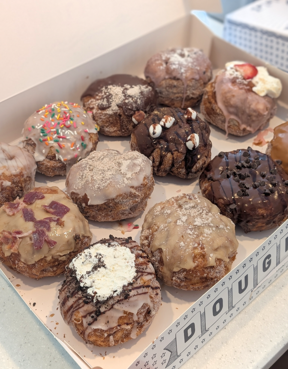 The donuts are about $4.50 a pop, but they're large for a donut. They're more like tiny desserts than basic cake or glazed donuts. They're also layered, like if a croissant and a donut had a baby.