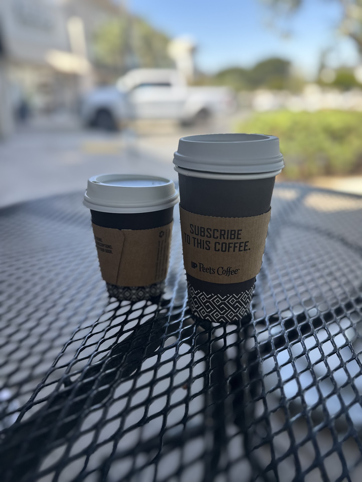 Read moreEspresso drinks taste pretty good but are on the weak side. I feel like I need more caffeine after. I came in the morning after having major surgery last month for my first time getting espresso as a treat since I couldnât have it after surgery with my jaw wired closed. I came in, was not acknowledged for several minutes. No one else was in line, though they were making mobile orders. Eventually my order was taken but he left to do other things before I could pay, so my drink still didnât make it into the drink que from mobile orders. After 13 minutes from arrival I finally got my drink. I said thank you, but I am unable to speak loudly due to recently being wired shut. As I walked away, one of the baristas made a super loud, snotty âyouâre welcomeâ as if I hadnât said thank you. I paid a premium for a drink. I was completely ignored when I came in- maybe because my face looks odd and swollen and then I was shamed loudly because the woman never looked at me to see I had said thank you. Very disappointing to be shaming people clearly who are physically not well and not like the inclusive Peets I remember from Berkeley....