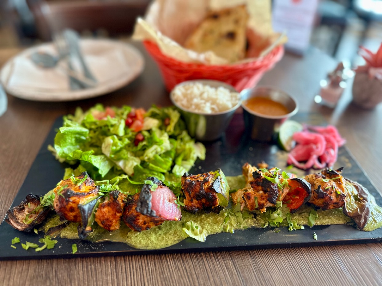 Appetizers Gobi Manchurian (vegan) Fried cauliflower tossed in a sweet, tangy, spicy sauce made with ginger, chili, bell pepper and garlic. Super flavorful, crispy with the right amount of heat. Crispy Green Chaat Crispy fried greens and jalapeno rings with chutneys, sev, cilantro, onion, makhana mix, and tomato. It has a little kick of spice. Crispy Masala Shrimp Crunchy fried shrimp topped with Indian masalas. Lamb Meatballs Flavorful Indian spiced lamb meatballs on a bed of yogurt served with herbacious masala chimichurri. Very flavorful, crunchy on outside. Loved this! Main Dishes: Habanero Mango Chicken Tikka Grilled chicken smothered in sweet and spicy mango habanero sauce with scallions and bell peppers. Served with flavorful herb salad. Chicken was moist and juicy. Love that they grill their chicken separately so it has that grilled flavor. Fish Tikka Grilled fish filet cubes served with herb salad. Fish cooked perfectly. Lamb Meatball Sandwich Lamb meatballs served in a naan wrap with yogurt, herbacious chimichurri, spinach and fresh tomato. Meatballs are so flavorful. It’s served with fries but maybe would be better with a different side. Chana Masala (vegan) Soft chickpeas, cooked with warm spices and aromatics. Pineapple Tawa Rice Basmati rice, mixed with tender pineapple peppered peanut masala. Chicken Tikka Masala Curry:Moist and flavorful. The curry was perfect.The curry was layer upon layer of deliciousness. Chicken Korma Curry Asked for extra spicy. The curry had a great depth of flavor. The naan is freshly made. We had both the naan and garlic naan. So good!! The drinks are colorful and refreshing! Drinks: Marigold- passion fruit, Golden Soda Ginger Ale, Mango Lassi Desserts: Chocolate Puffs With Mango Mousse:creamy, tangy. Light and delicate.