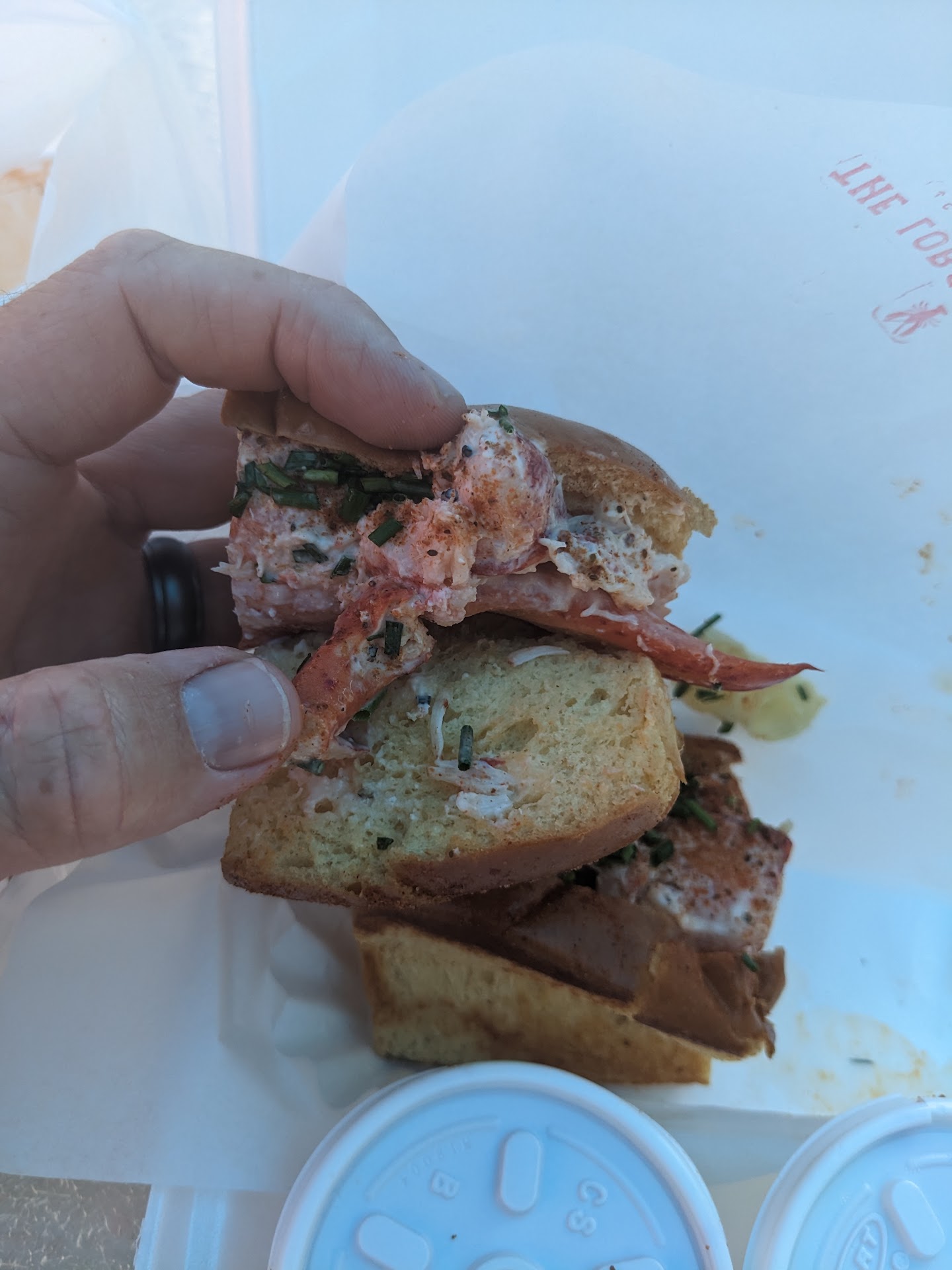 I ordered a lobster roll with sides of bleu cheese coleslaw and baked beans. It was ready in maybe 10 minutes or less. Everything was WONDERFUL. I especially liked the coleslaw. It's a really cool take on a normally boring, drippy, sour side dish. I'm definitely going to make some at home.