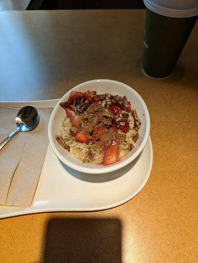Read moreGreat place & price $$ for coffee, breakfast, & smoothies. Don't forget pick2, then great treats, too! Pleasant staff. No blaring music. Good window seats & fire place. Valuable Point system. Only issue was rounding up for charity. We paid cash, and that threw system for a loop, twice. At 11, half tables taken, by laptop users & corporate conversations. Want a quieter setting, follow tile to back. Tables too small to spread out, but quaint for eating; and max seating. Anna Maria on the receipt... however Thank you to Assistant Trainer [forgot name during reg change over], getting our eggs over easy -- awesome! Thank you Kelly / Tiffany for staying pleasant. (I am terrible with names, today) for reminding me of the whoopee pie dessert - "Cocoa Creme Cookie," & points, when ordering delicious Spinach & Artichoke Souffle. Daily (her name) & Micha were helpful, though the were keeping busy The cooking staff is always smiling. They're like ducks on water, calm demeanor, while kicking in higher gear under the surface (behind...