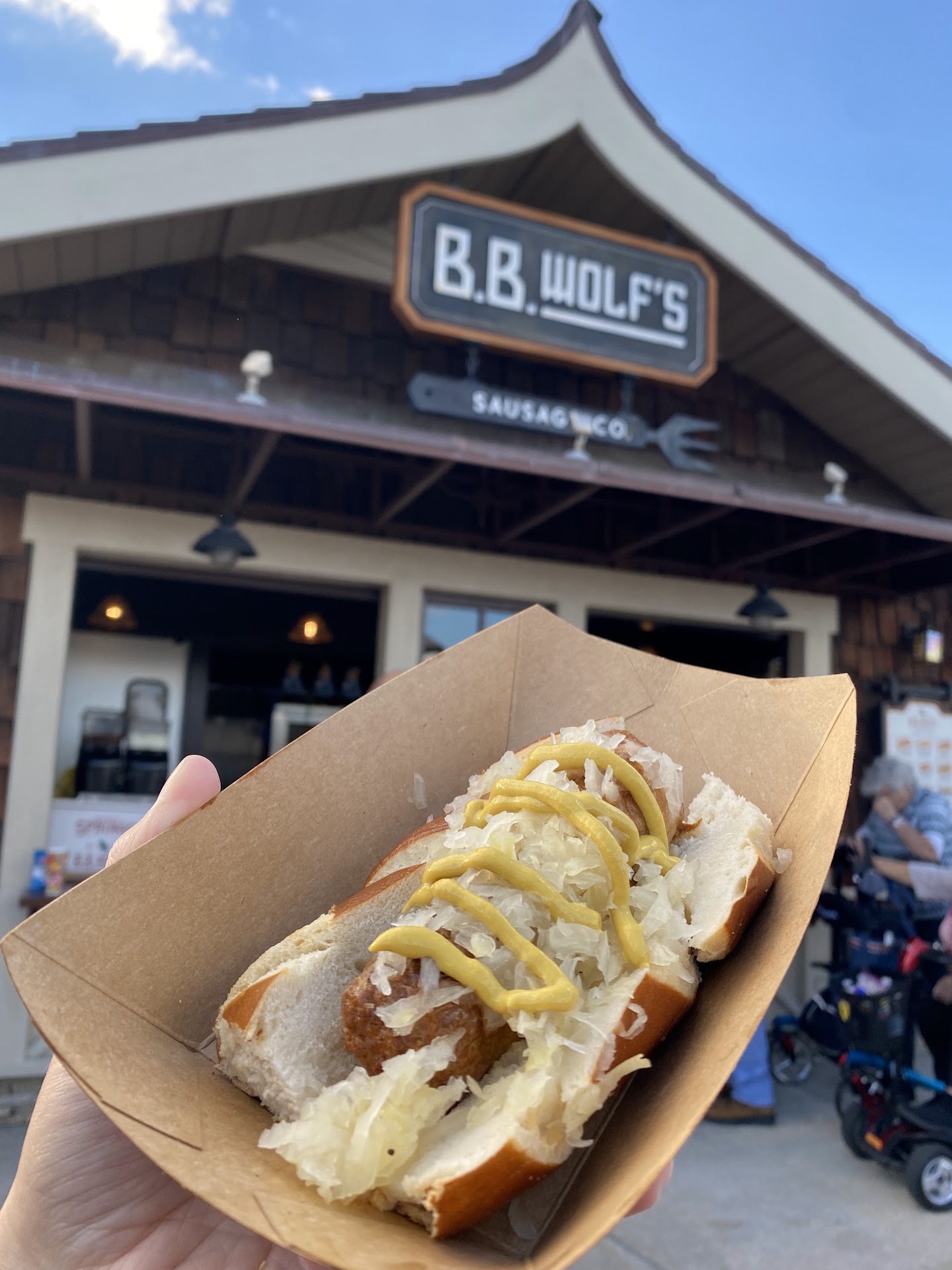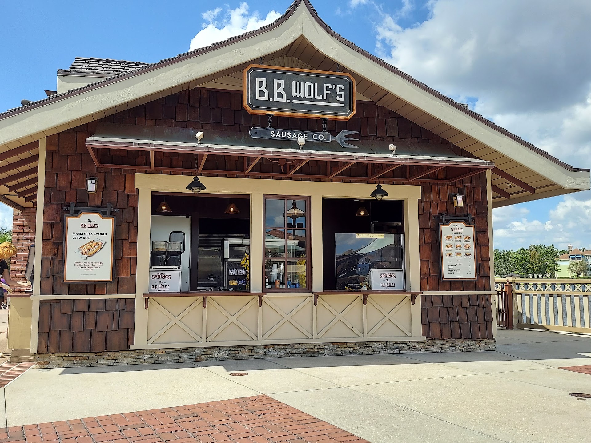 Read moreThis was our first visit to BB Wolf’s at Disney Springs and it was really tasty. I ordered the Hawaiian footling hot dog. This was served with a quality thick beef hot dog split down the middle and grilled. The bun is grilled on the sides and the Hawaiian relish consisted of pineapple, onion, red bell pepper and diced chicken with a Hawaiian teriyaki style sauce. This was served with a small bag of Lay’sPotato chips. This was not a cheap lunch at $13.49 fir the dog and chips, but again it is a quality hot dog so I can appreciate the experience. The hot dog was beautiful in appearance and the only negative is that the toppings are put on top of the hot dog and they tend to fall off when you take bites. Be sure and pick up several napkins. The cashier today is Norah and she is still eating her ears and was friendly and seemed to know what...