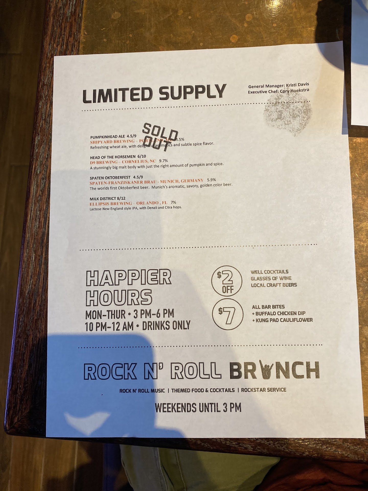 Finally, the staff. Our waitress was Lindsay. You couldn't have asked for a more responsive and involved waitress than her. A few issues came up with some food and a beer, but she addressed them quickly and without any concerns.