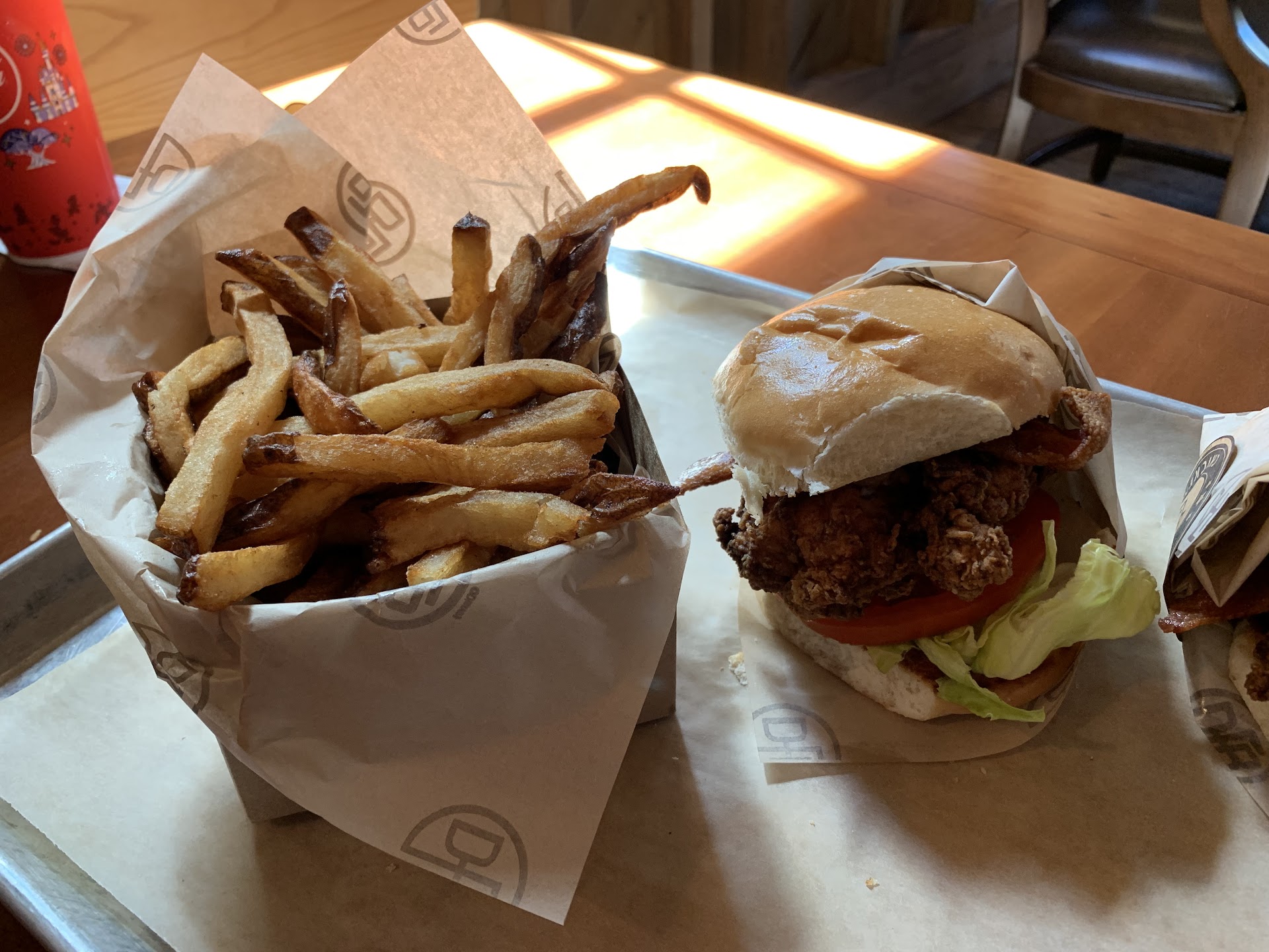 When the sandwiches and fries were delivered, I was reminded of how much food you get at D-Luxe. For reference, I have eaten a lot of chicken sandwiches. It was always my go to growing up, because burgers were just never my thing. So, when I say this was a massive chicken sandwich, I mean it was MASSIVE. I was unable to take a bite through it all, as it was way too thick.