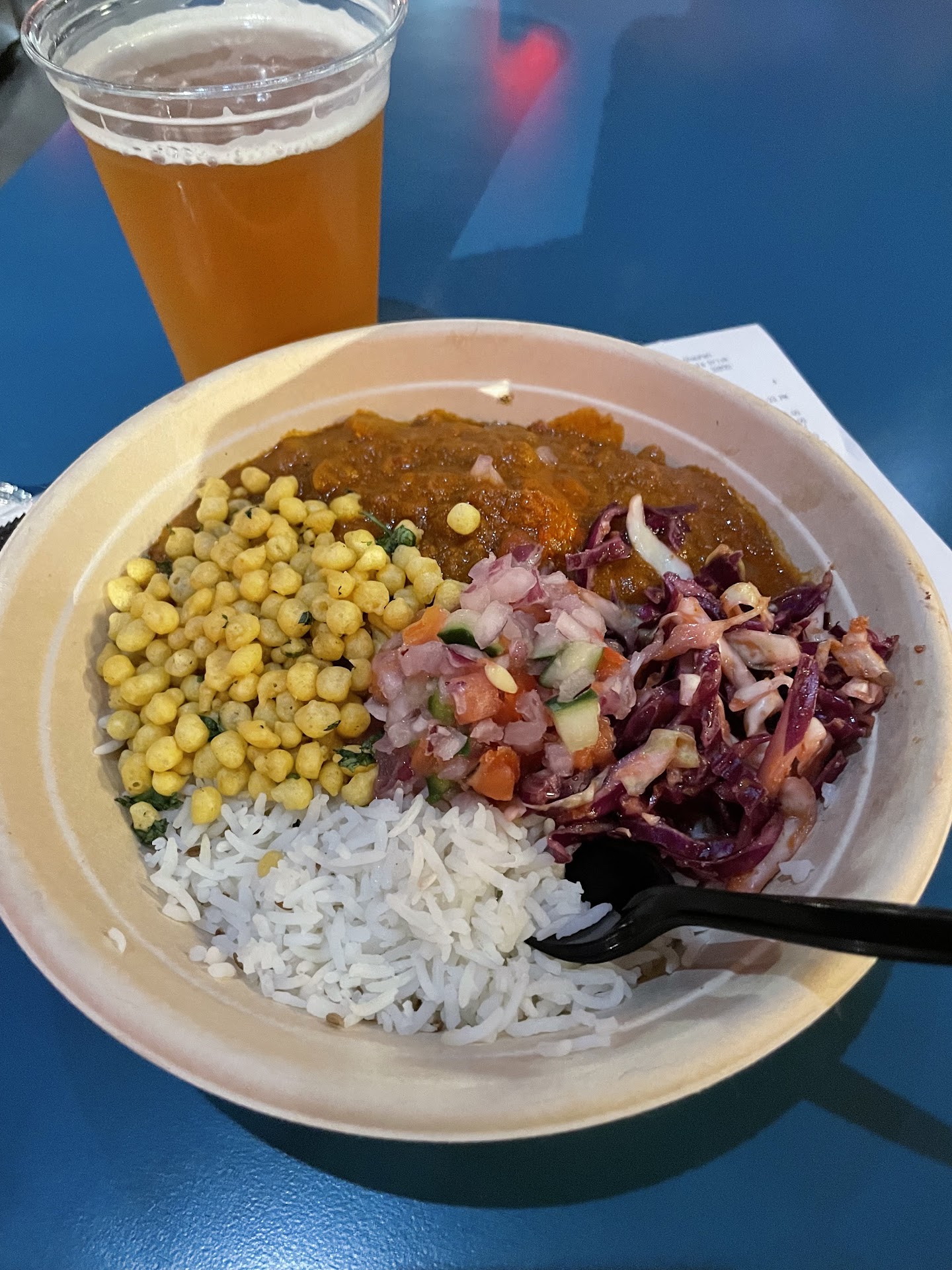 I ordered the build your own bowl with the cumin basmati rice, masala roasted cauliflower, and bhunna sauce. All the bowls come with pickled red cabbage, indian pico de gallo, and masala chickpea pearls.