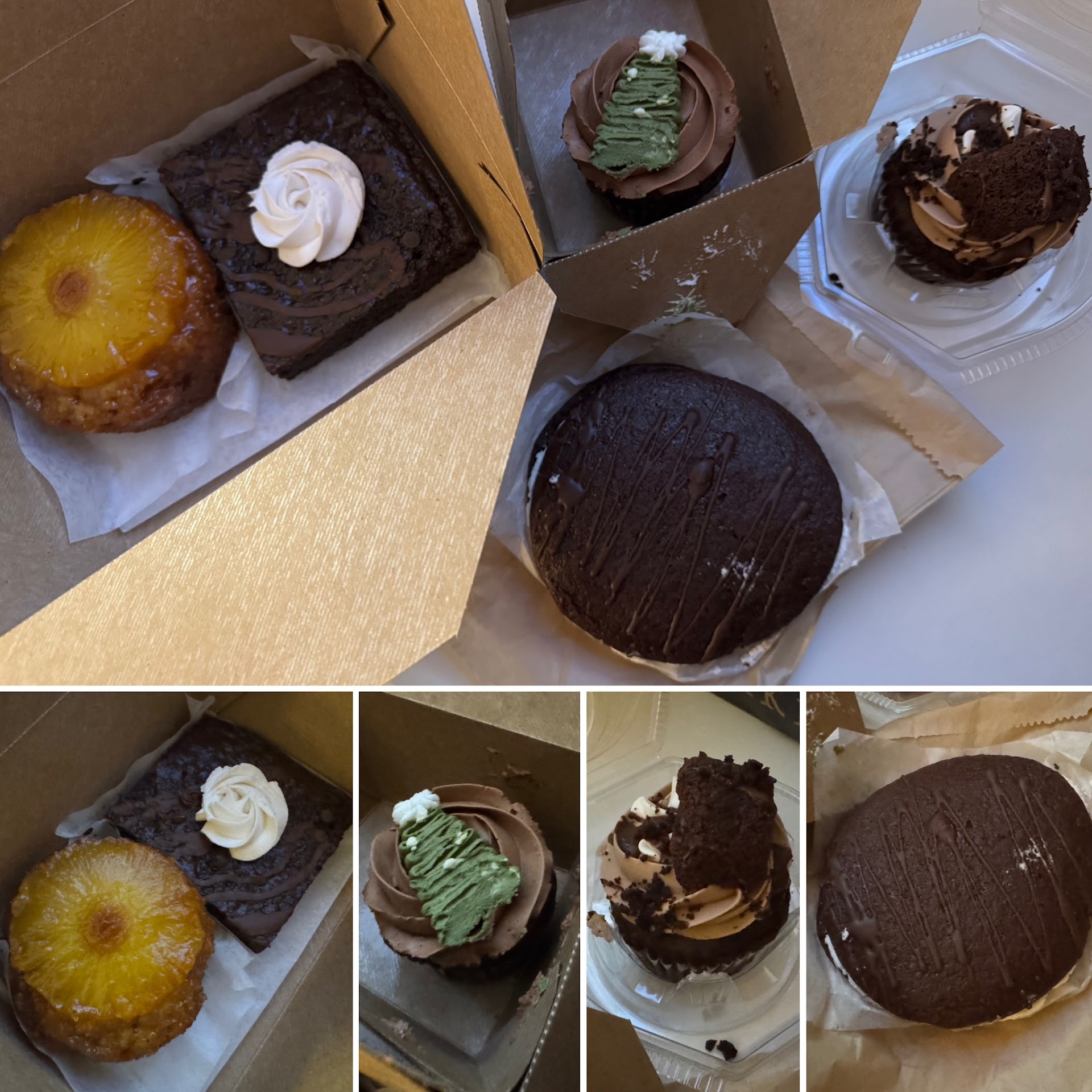 We decided on a Key Lime cupcake, a devils food whoopi pie, and a pineapple upside down mini cake. They all looked incredible and I was excited to chow down. Even the two ladies working were funny and sweet, and we liked them a lot. I only wish I could report as positive for the actual tasting experience as all the rest.