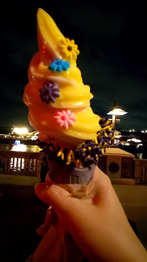 But then they DID say they could do that, but then only served ONE flavor, completely ignoring the other one. Not a huge deal, just not great customer service. But the Dole Whip still tasted great! Would've been nice if there had been somewhere to sit without having to go way over to another food source...