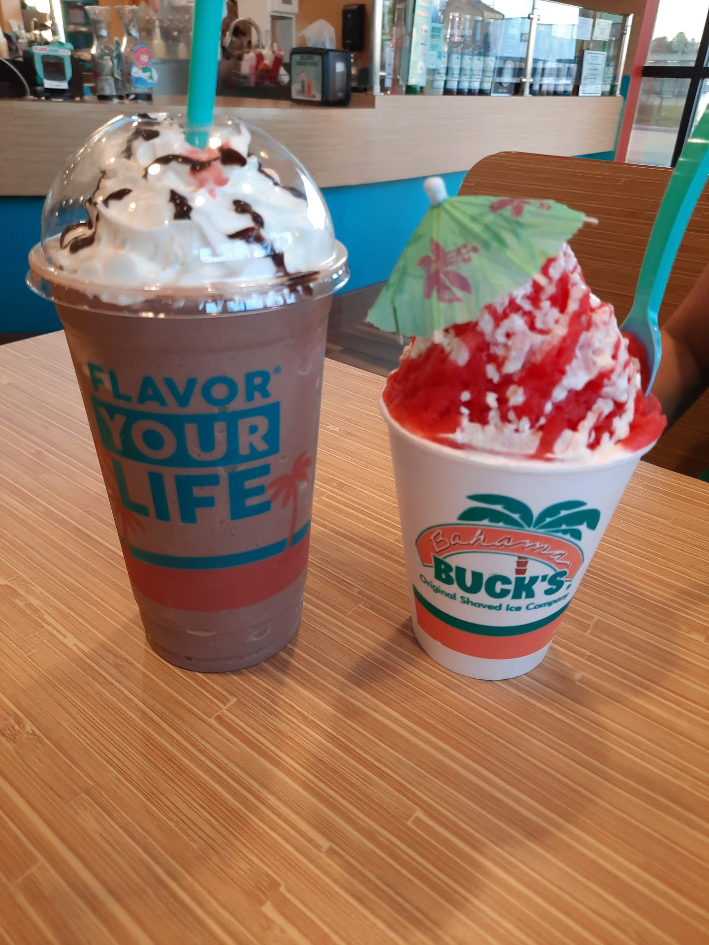Read moreWife and I wanted some dessert after going to eat dinner on a Saturday night about 7PM. Never been to Bahama Bucks since it's not near us and not on our path, but made the trip across town to try it. Simple and quiet place that was easy to get to. The couple girls working there were very polite and patient as we looked over deciding what we wanted. We finally settled our decisions and got the strawberry shortcake and the kokomocha (not 100% sure on name). Both were pretty good and made within a couple minutes of our order. We we were able to sit down with no one else inside (most people hit drive-thru or ordered to-go). After sitting there for a few minutes sipping our drinks, a girl came over with a strawberry drink and gave it to us since they knew it was our first time there. Very polite and courteous people. Will definitely see about going back when possible as there were a lot of menu items that we wanted to try. And by the taste of the 2 we did, I'm sure the rest will...