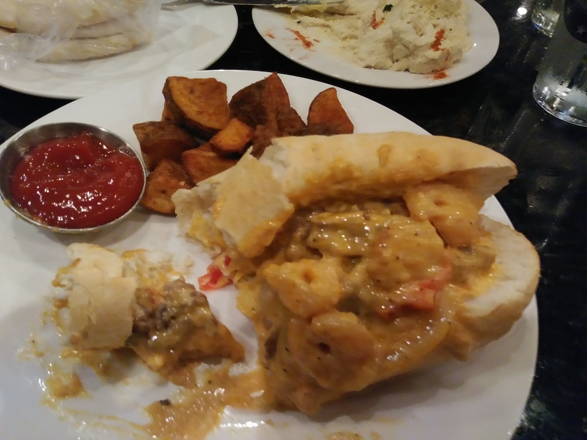 Appetizers: Hummus and pita very good. Obviously in house prepared. Gumbo chicken and sausage. Flavor very good comes with rice and potato salad. I’m a picky potato salad person. This was was on the sweet side, with mustard and chunky. I liked it. But I always want potato salad details. Bacon wrapped dates (not on restaurant week) but they were amazing!