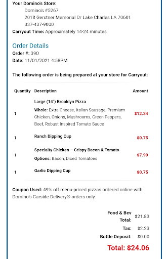 Read moreHorrible service. Ordered my pizza at 4:00 pm for 6:30 pm last night. Went to pick up at that time and it wasn’t ready. That’s fine. I waited in the drive through for another 20 min. Pull up to the second drive thru pick up window and the person working that window asks for my name and tells me it still isn’t ready. That the pizza is ready to come out of the oven. I continue to wait another 15 minutes. I ask where my pizza is. The worker asks for my name once AGAIN and goes to check. She comes back and tells me they’re remaking my order fresh. I said “ how can they remake my order when I never had it in the first place” and then I said “ so basically they’re just now making it” she tells me yes. I ask for my money back. I didn’t have the time to sit at dominos all night long. No apology... no nothing. They could’ve not cared less. The employees at this location are not competent. They literally all should be fired. Not organized whatsoever. Will...