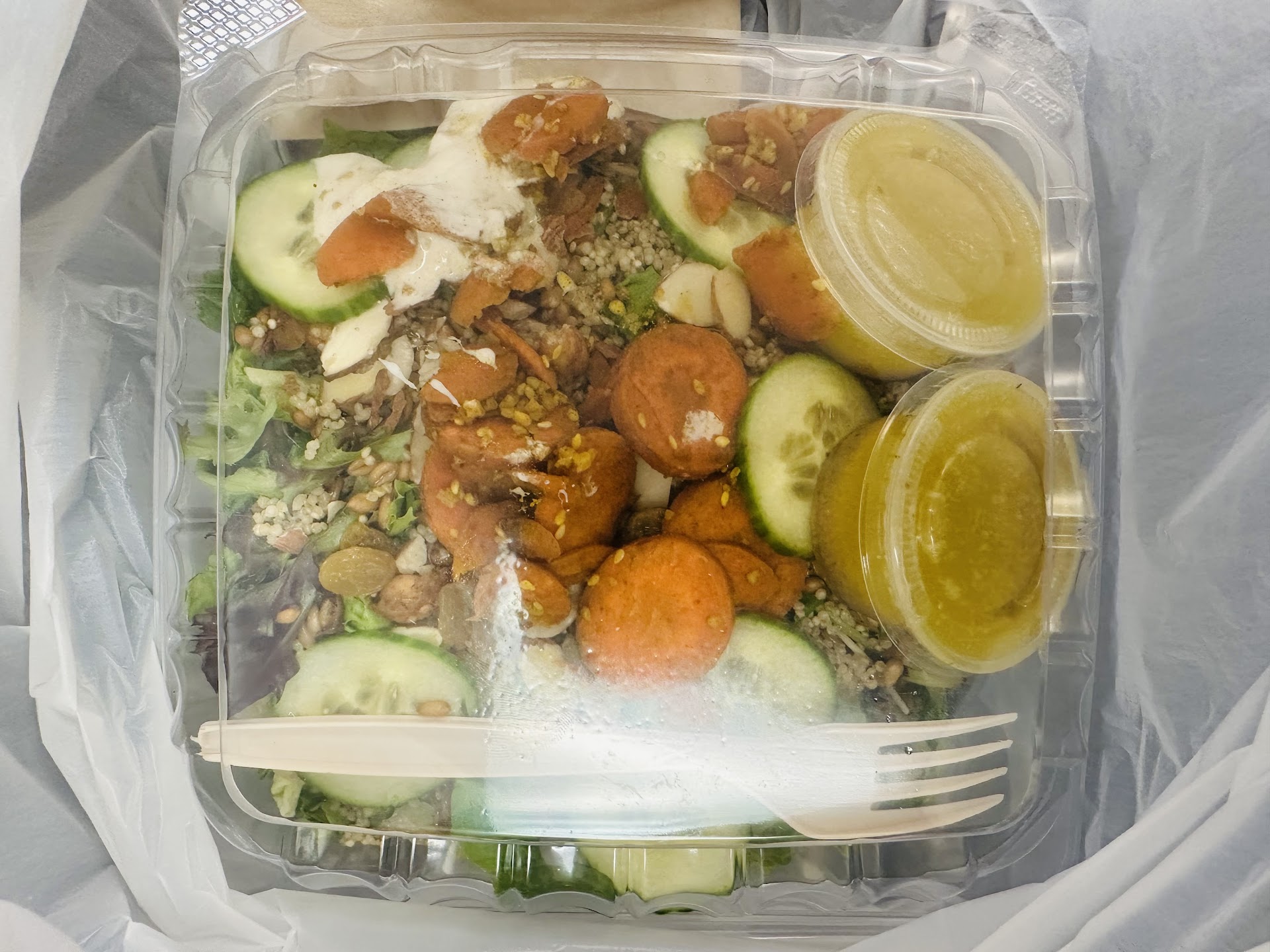 Read moreIt pains me to not be able to give this place 5 stars. If it was solely about the food quality, I would but unfortunately it is not. I order from this place very frequently and I just love the food BUT most of the time, I do not receive the food I ordered or it is made incorrectly. I have tried many sandwiches based on the fact that they send me the wrong one so I am trying a new sandwich apart from the one I actually ordered. While they have all been delicious, it would be great to get ONE order sent to me the exact way I ordered it. I don’t always have the convenience of driving to the restaurant on my own to pick up so I rely heavily on online ordering, like most hard working moms do! Just a side note, today I tried the little Italy breakfast sandwich and it was awesome, my tea was missing the almond milk, and lastly I got the roasted carrot tahini grain bowl, which is always amazing. UPDATE: I had to take away a star…. This morning I ordered a vegetarian breakfast sandwich But I received a sandwich with bacon… I had such high hopes my order would be right this morning… 😭 I was looking forward to the avocado spread with the provolone...