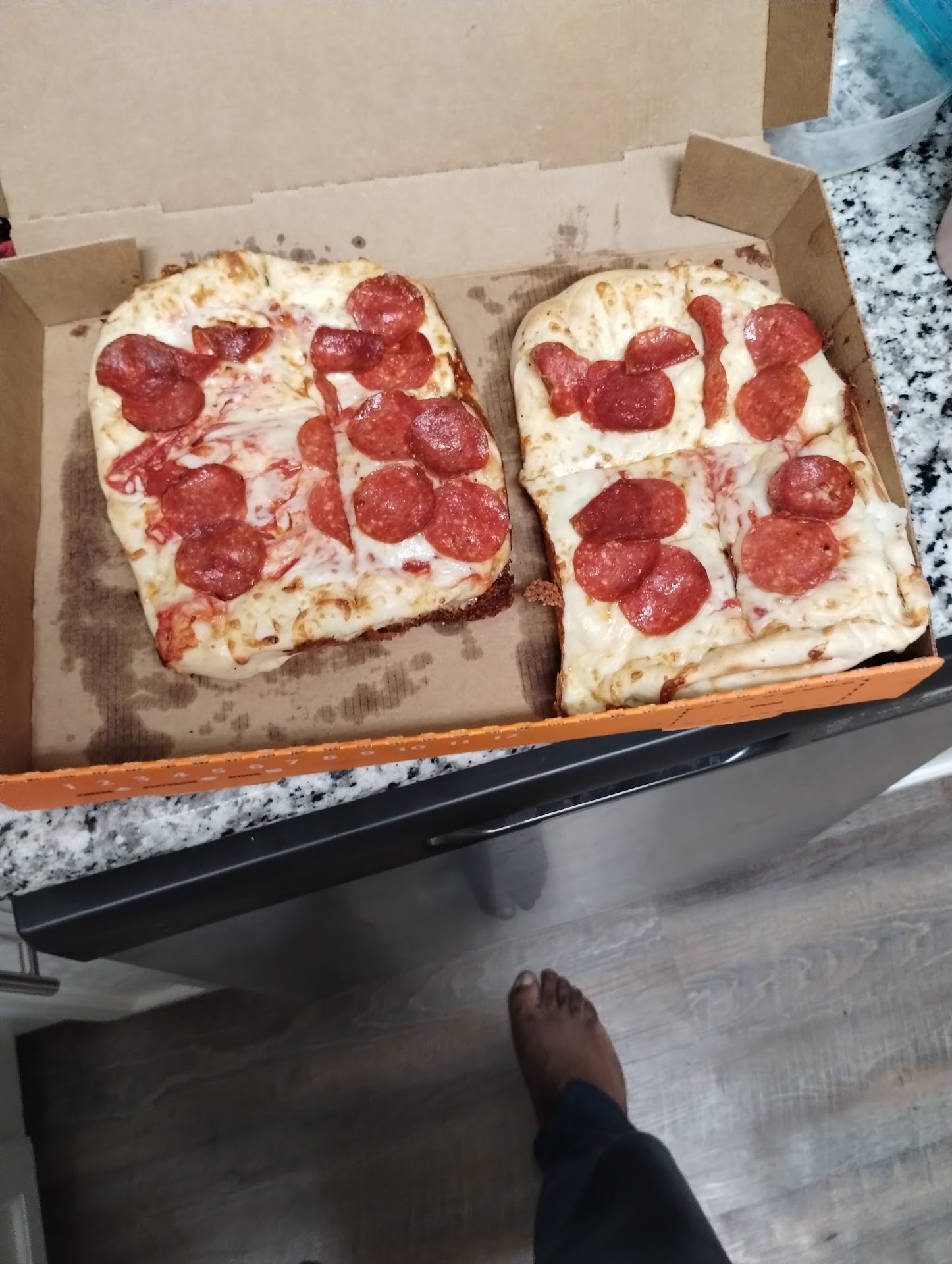 I used the app (you know the one they constantly advertise on tv, saying order using the app, pick up at the portal and skip the line!). I ordered my food on the app, paid and it said it would be ready for pickup in the portal in about 35-40 minutes. I head to the store about 30 minutes later, figured if I have to wait a few more minutes when I arrive that’s fine. I walk in and the phone is ringing off the hook. There’s no one at the register. There’s a worker in the back with headphones dancing or something. Finally, a girl comes walking out the back and says “can I help you?” I mention I’m picking up my order in the portal, which is empty. She asks the order number, I show her my phone with the confirmation number and she says “oh it ain’t ready yet. Gonna be about 10 minutes.” I assumed they haven’t even prepared it. I go wait in the car for 10 minutes, return to the store, the phone is still ringing off the hook, no one at the register. I stand there for literally 5-6 minutes before someone returns to the front. She says “oh yeah, it’s gonna be about 10 minutes.” I wait patiently, she finally brings half of my order and says “we’re still waiting on the cheese sticks.” I wait another 5 or so minutes and she finally brings them out. To top this wonderful experience off, I get home and the pizza isn’t even cut lol.