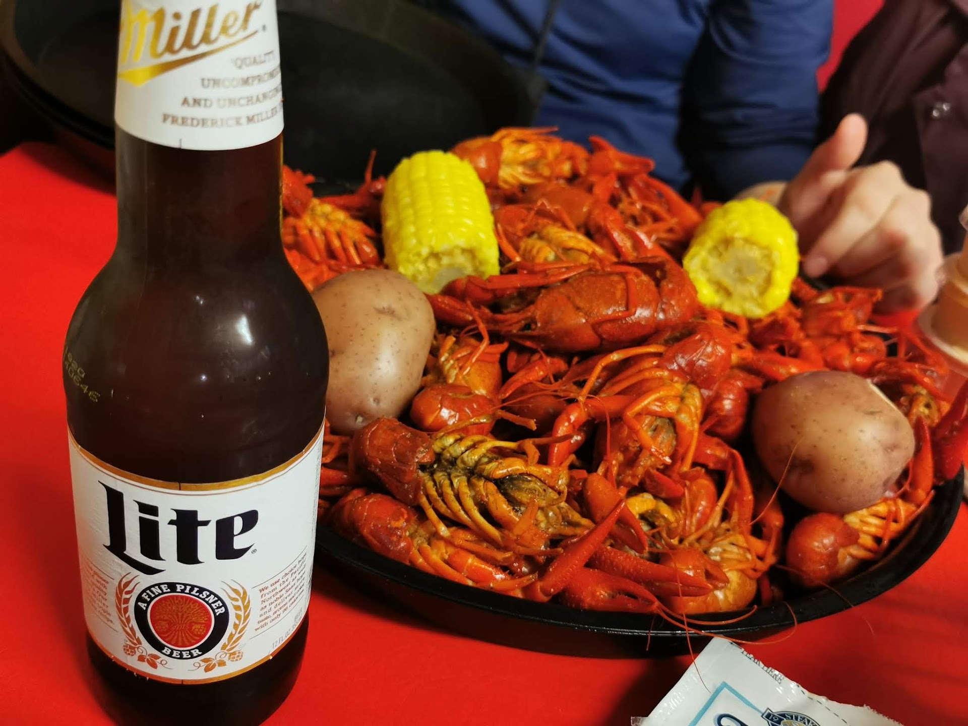 As I turned around to the table beside us, there were 8 of them and they each ordered a 4lb crawfish, and I guess that's the norm and that's how they roll here as a big family gathering. The crawfish also includes sausages and corns.