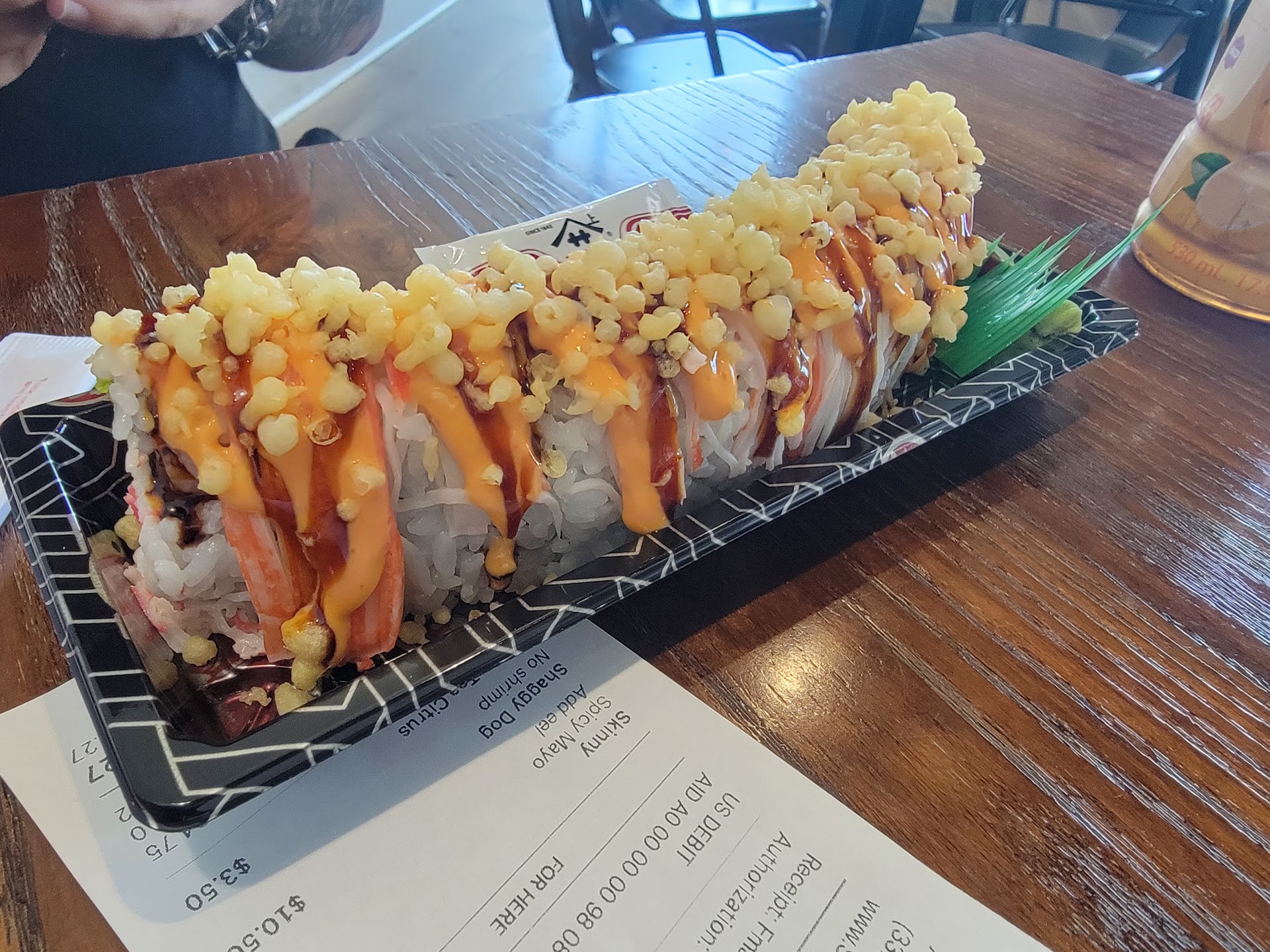 Food: dine in & to-go options. Many different sushi rolls to pick from. They also have a few appetizers (i.e. spring rolls, etc.). Most rolls seem to run $9-12. Drinks are sold separately (no fountain drinks, only bottles/cans). I like their skinny roll with spicy mayo & eel sauce. I feel you get your money's worth for portion size.