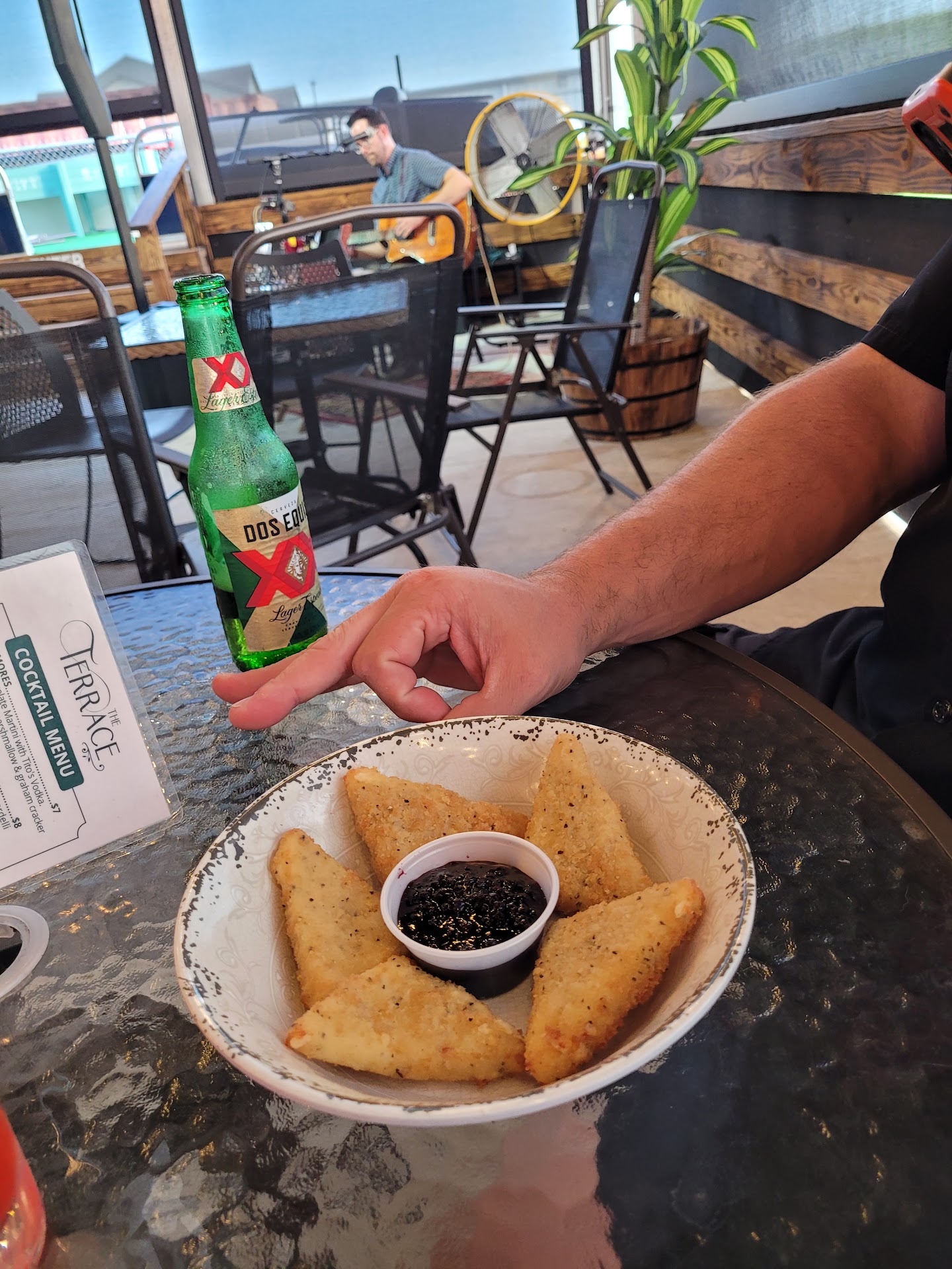 I ordered a watermelon drink that was wonderful. we ordered Fried Pepper jack bites for an appetizer. It came with a blueberry pepper jelly or dipping sauce.