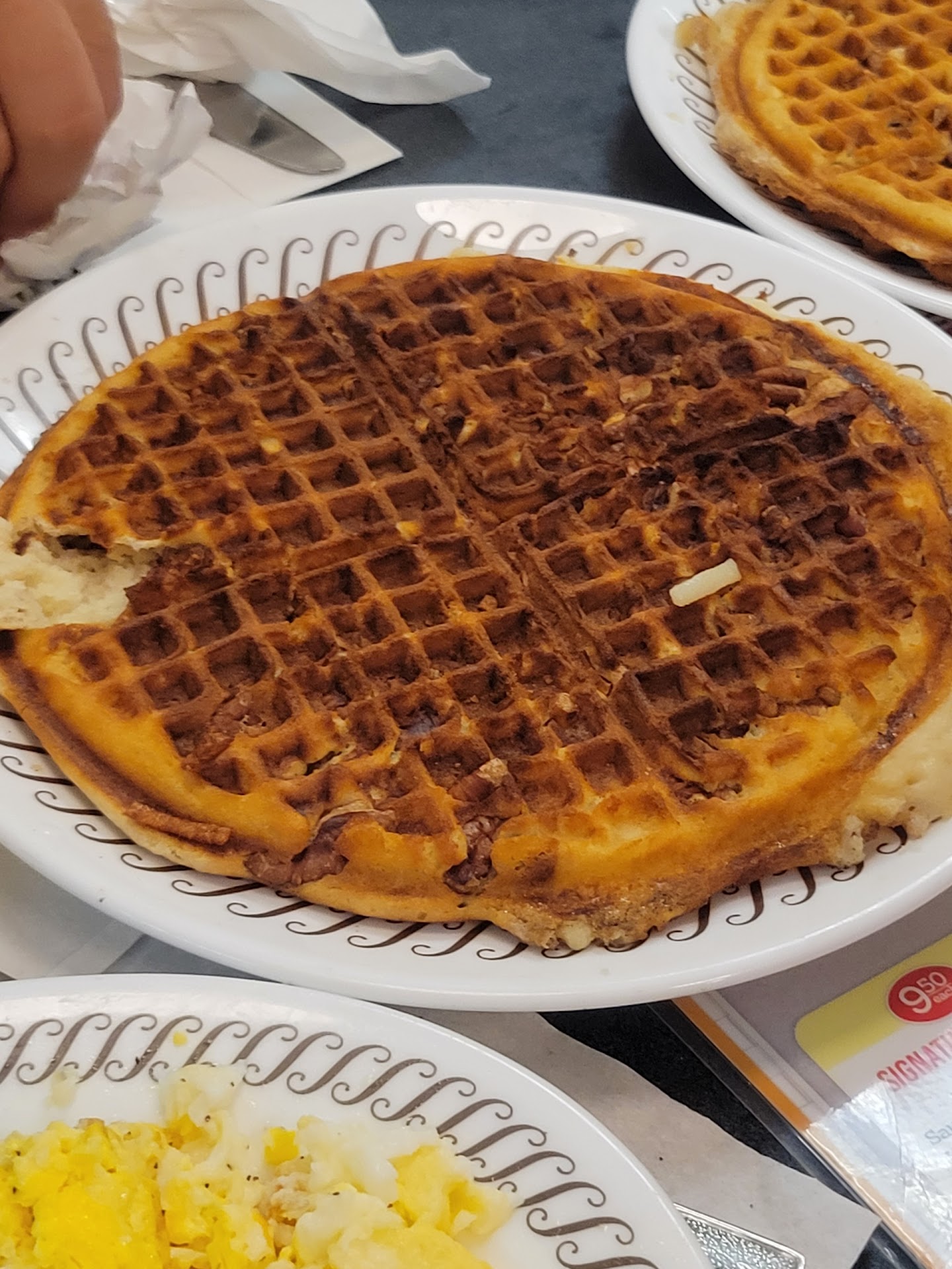 Went down hill when she brought our drinks. She accidentally spilled my sweet tea on my very expensive iPhone 14 pro max. Which I said nothing because she went ahead and cleaned it right away. She gave us no straws. Iām not sure where her attitude got sour but she brought out our waffles undercooked. It was nothing but wet dough on a plate. My husband asked if she could remake his then I asked as well she said āyāall want them well doneā? I said no I just want them cooked and I showed her the inside which was squishy. She walked away and threw the plate in the sink loud. I over heard her say she was aggravated and ready to go. Then she brings us silverware and I had food on my fork so I asked for plasticware instead she came back and said they didnāt have any. I said well can I get a clean fork she said I can give you some hot water. I looked up at herā¦ā¦:. And turned to him and said letās go. We got up to leave
