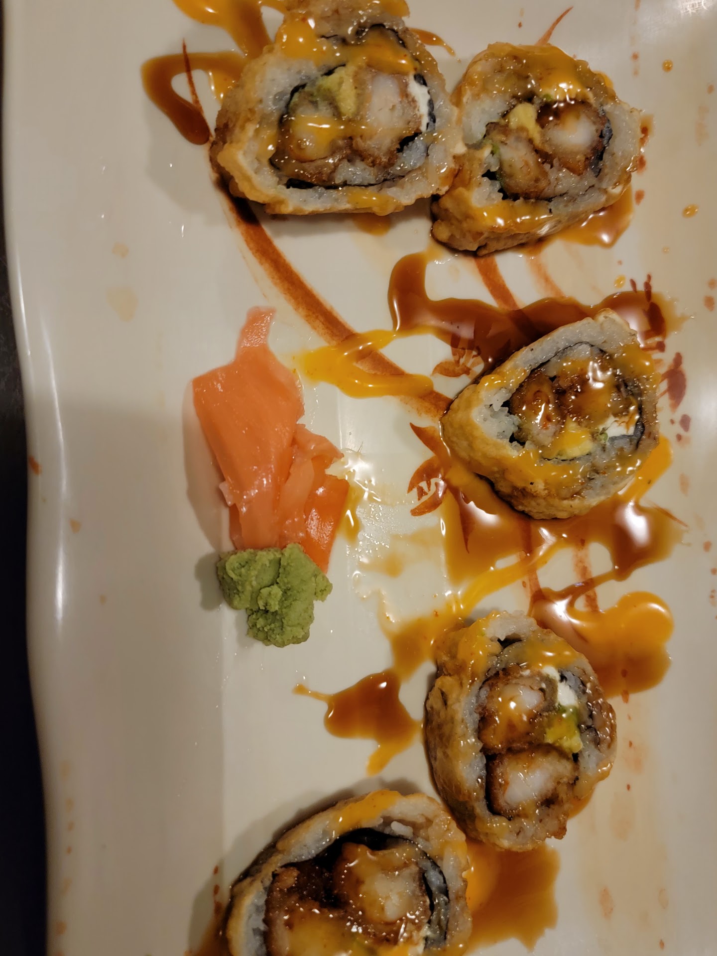 Read moreWent here around 5pm on Sunday. Not many people here because of time. Went with my wife and 2 daughters(2months & 2years old). Service was prompt and polite. We ordered edamame, dumplings, shrimp fried rice, super tiger eye roll, and Nemo roll. Everything was very well cooked(or not for sushi lol). Food arrived within about 5 to 10 minutes. Absolute only complaint was that the 2 rolls were not wrapped tightly, so the wanted to fall apart when grabbed with the chopsticks. But every other time we've gone they've been wrapped very well! They even brought us out some green tea and strawberry ice cream topped with whipped cream and 3 cherries and spoons for us. Bathrooms were clean, but had to put a pallet on the floor for our daughter to change her because there were no...