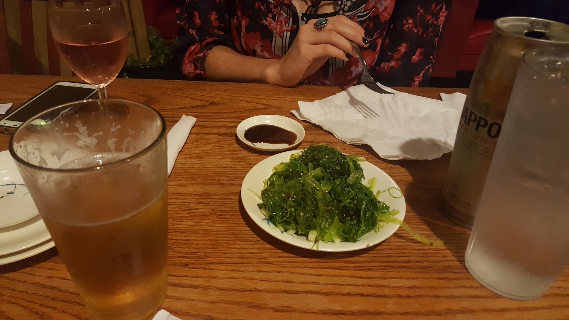 Food: sushi (cooked and raw), noodles, rice, soups (clear, miso), salads (house, shrimp, avocado, squid, cucumber, seaweed, etc), appetizers (octopus, rangoon, dumpling, mussels, tuna, etc.). We tried the noodles with yum yum sauce (it was good and enough to share between both of us), rock & roll (not bad- crab stick, shrimp tempura. Felt it could be bigger), and the lobster roll (most preferred out of all). Nothing was spicy.