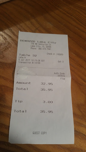 We went to the new Denny’s in Lake City on July 5th, 2017 before 11am.