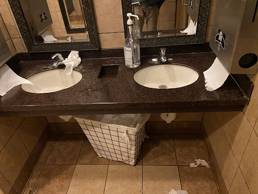 The place was relatively empty, and by time we left just after three, all but one handicapped space was still occupied. The women's restroom was not navigable by the wheelchair bound member of our party, required assistance with doors, and did not find handicapped stall to be completely safe and usable without assistance. The main sink was covered in water and excess soap when we arrived, and 1.5 hours later, had not been corrected. Trash also spilling onto floor from bin remained. Don't know what the rest of the staff was doing, but it was not cleaning, preparing for dinner service or waiting on customers present. Despite these challenges, we tipped well.